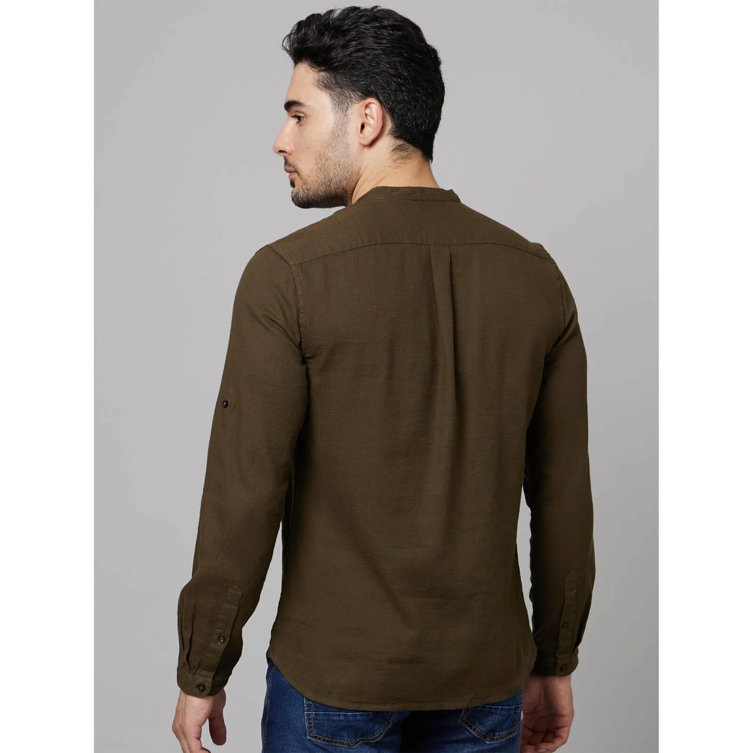 Celio* Solid Regular Fit Cotton Olive Shirt