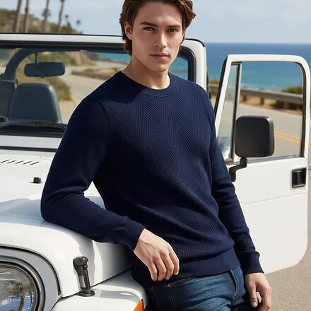 Celio Men Navy Blue Solid Straight Fit Cotton Sweaters