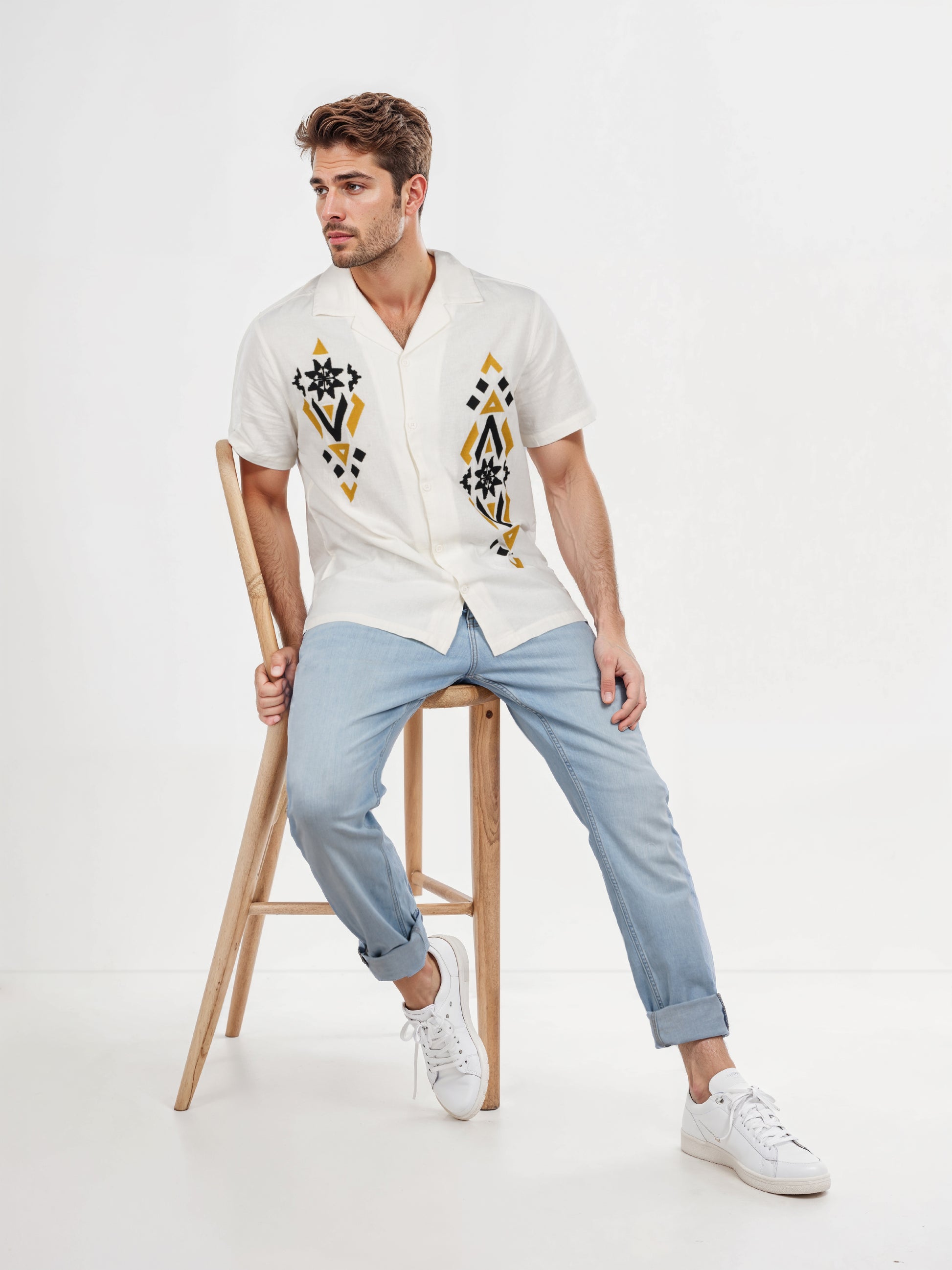 This white linen shirt comes with a stylish embroidered design, giving the main character a vibe. It is your golden-hour glow-up in clothing form. It’s light, it’s breezy, and yes, it flirts with the wind every time you walk. The embroidery? It just has the right touch of artsy charm, like you wandered out of a dreamy coastal café and into someone’s Pinterest board. Button it up for beach weddings, unbutton it (a little) for rooftop drinks, or toss it over a tee. Breathable linen keeps you cool, while the crisp white adds instant polish. This shirt doesn’t just do summer—it is summer. So go ahead, serve that effortless look.
