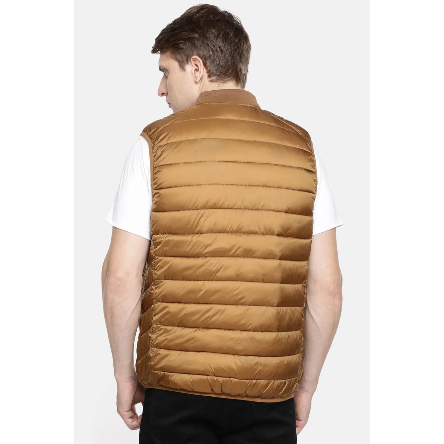A quilted jacket is the go-to choice for the ultimate comfort and neat look. Go for a neutral shade to combine a quilted jacket with a sweater. Make this ensemble office-appropriate by adding a pair of beige chinos and black leather boots. A statement watch with framed classes will give a refined look to this getup.