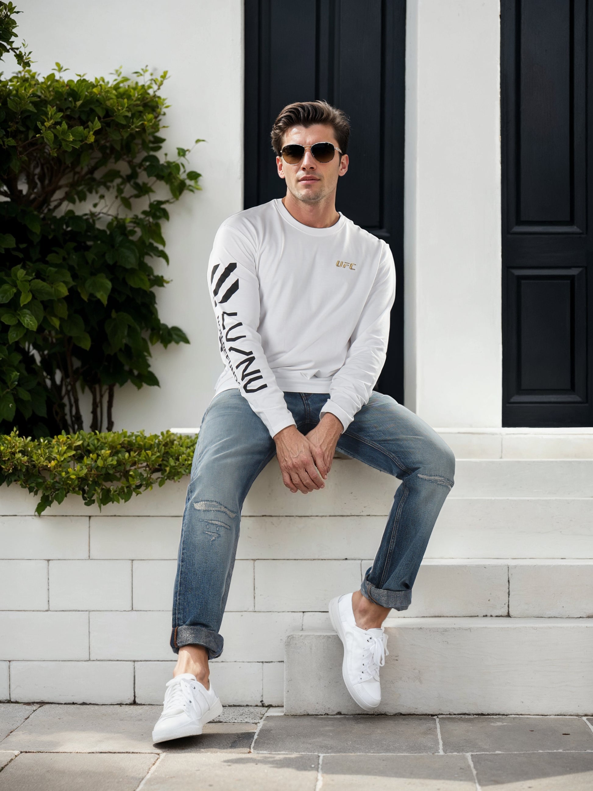 This full-sleeve white UFC T-shirt blends comfort and a UFC vibe. It is a go-to choice for every fashion enthusiast who celebrates the full-sleeve style. Know what makes this T-shirt different from others.