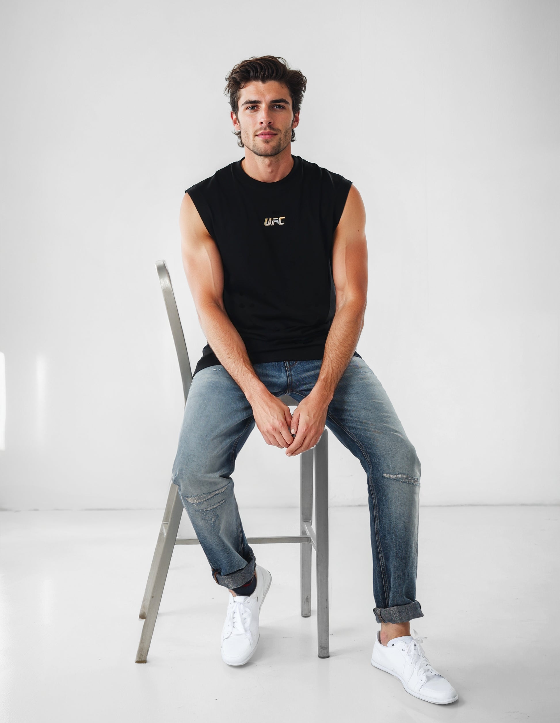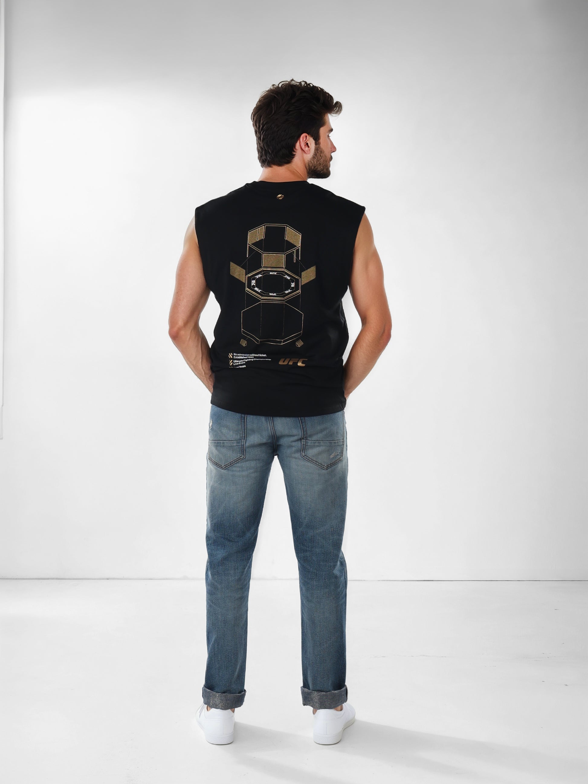 This sleeveless UFC T-shirt easily achieves street-smart style. Whether you're taking a casual morning walk or strolling along the shore, this T-shirt makes a fashion statement. Here are the features that make this T-shirt outstanding.