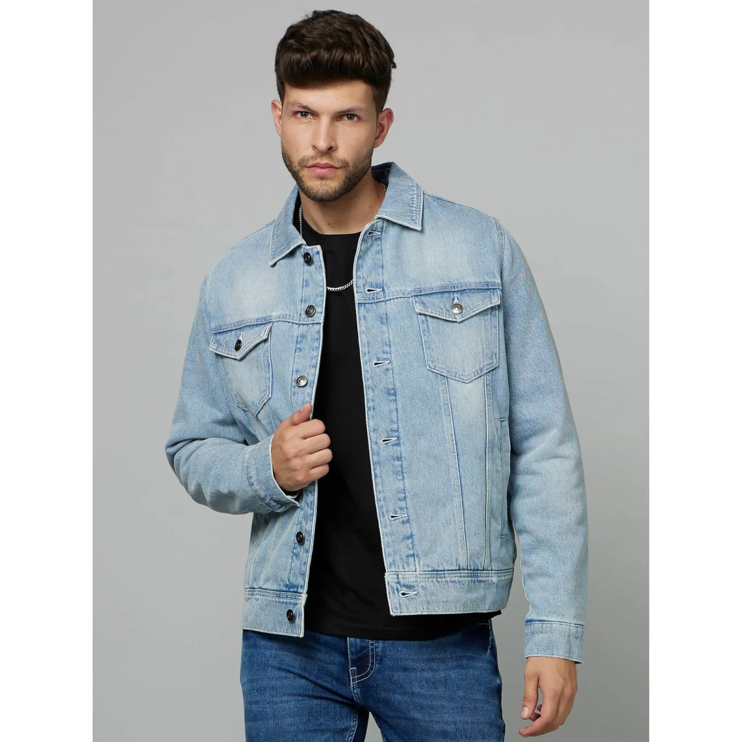 Solid Blue Shade: A denim jacket in a solid blue shade can achieve a simple, modern appearance. Layering such a jacket and pairing it with jeans or chinos can incorporate a subtle appeal.