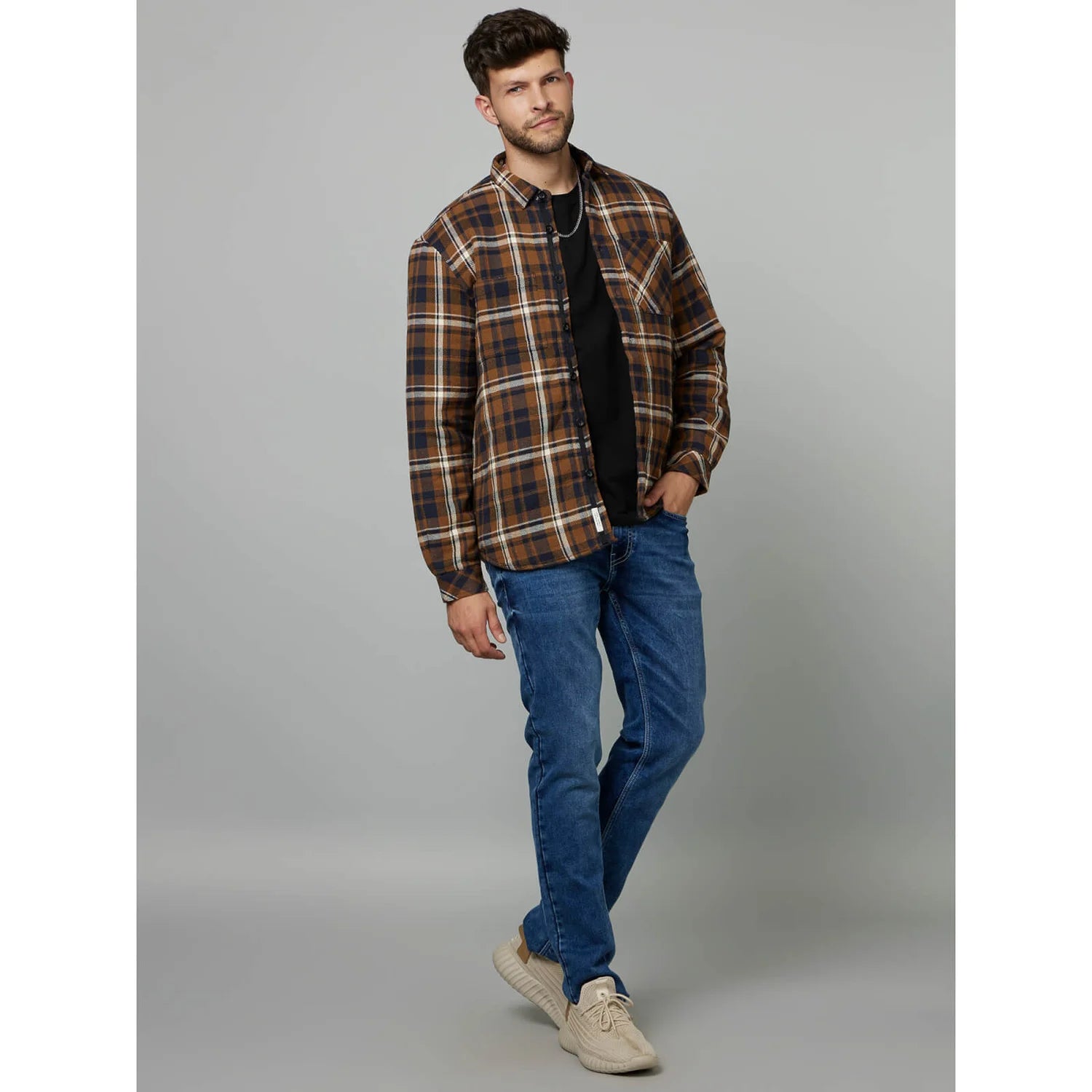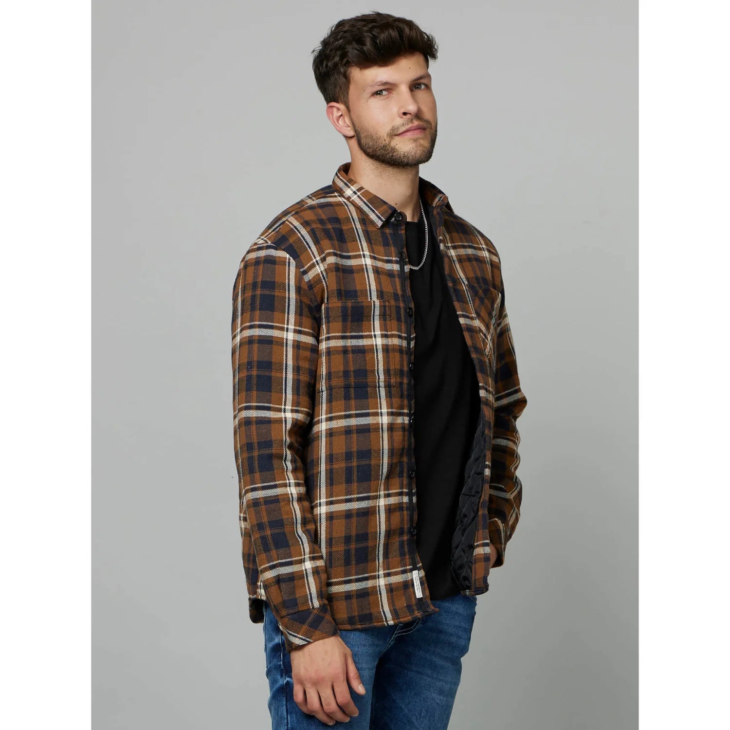 Get a laid-back vibe in your casual look by pairing your outfit with this brown checked cotton jacket. Any of your casual outings can be made stylish with this jacket. Shop yours now!