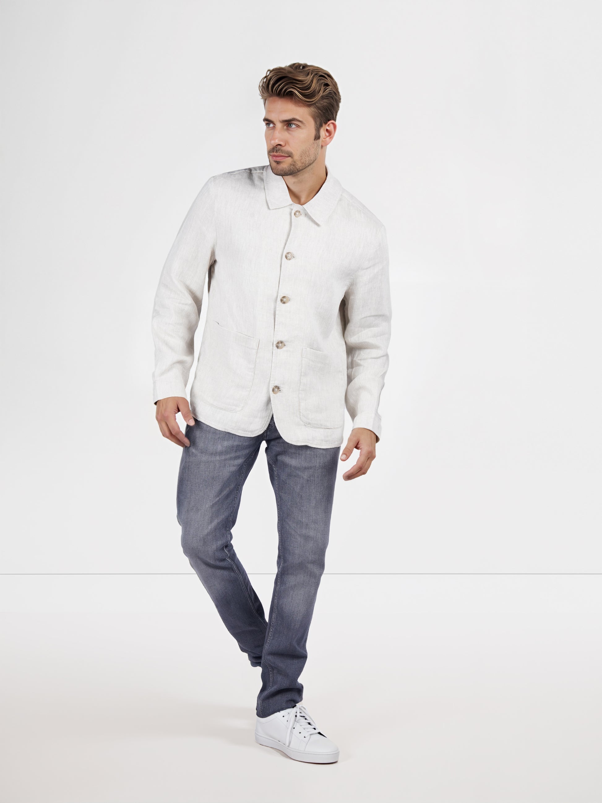 Your sunny days can be made effortlessly stylish by layering this off-white linen jacket. With high-grade fabric construction and great fit, this jacket serves as one of the best wardrobe essentials for summer.