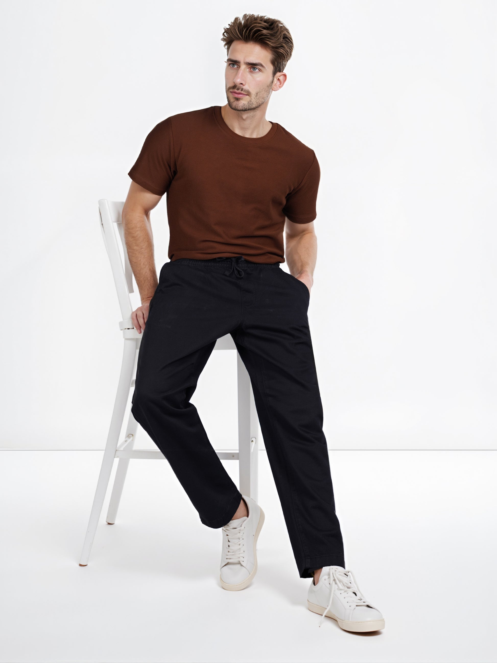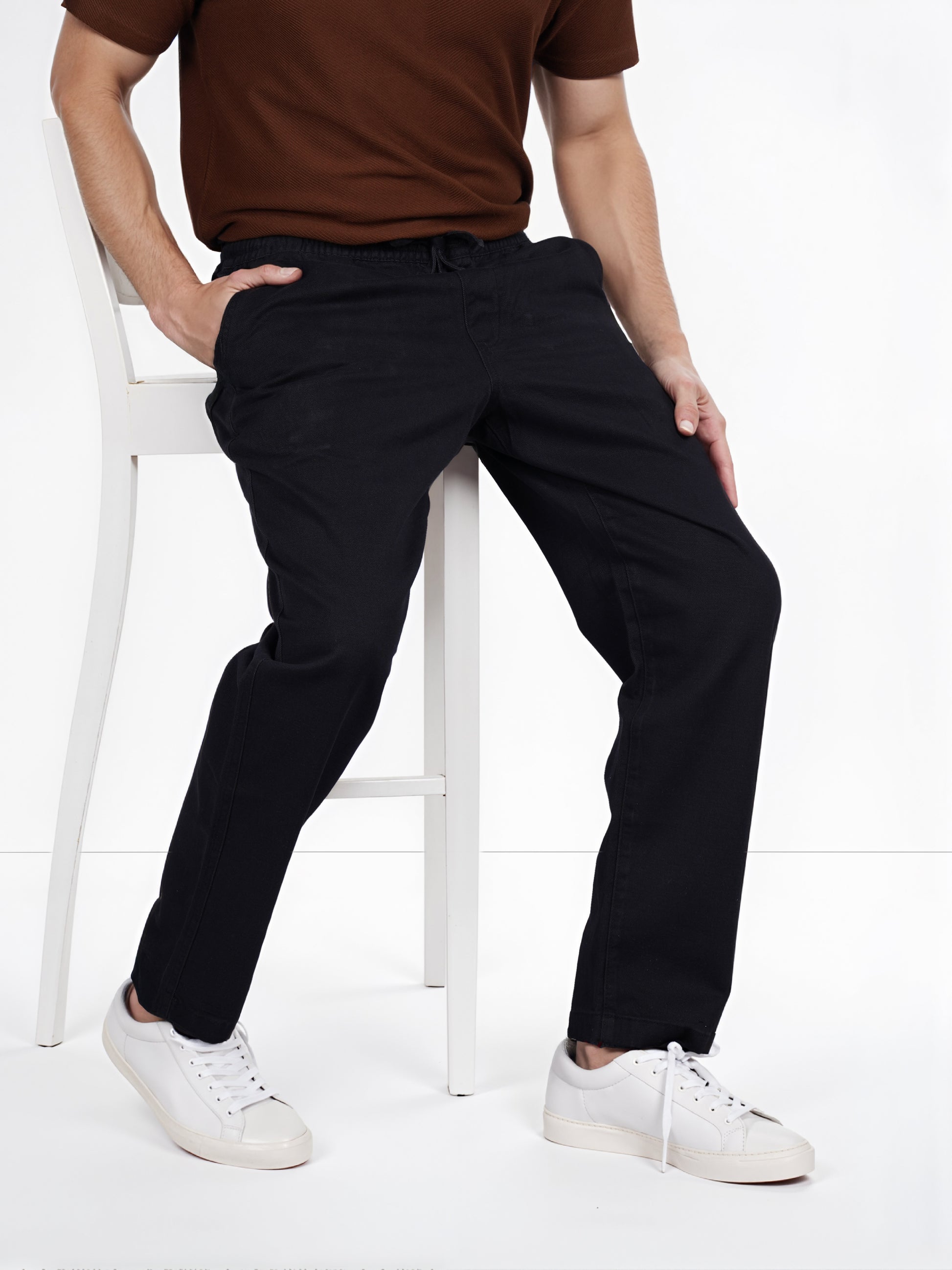 Black Relaxed Fit Linen Trouser For Romantic Date Nights