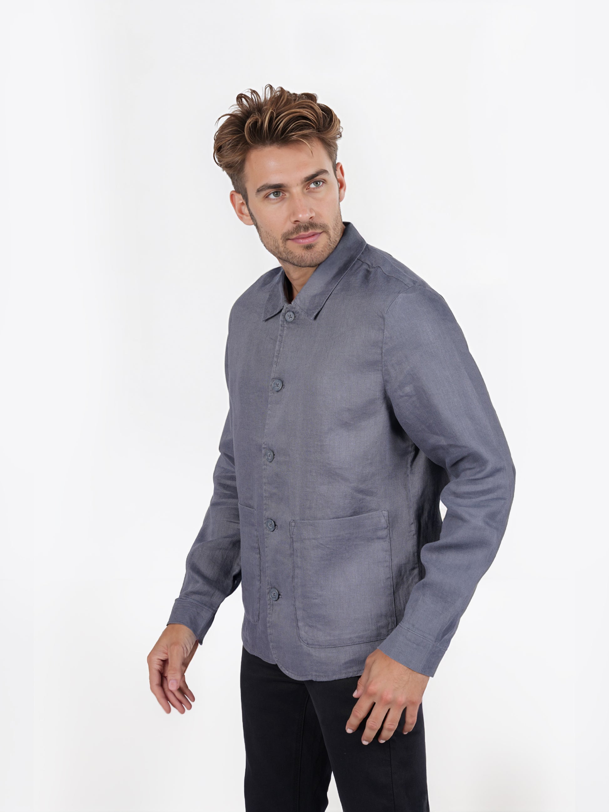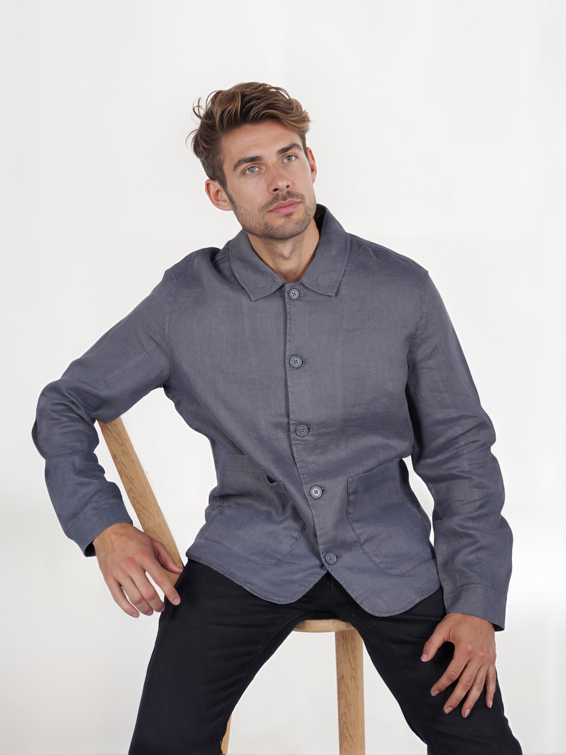Grey Solid Linen Jacket To Elevate Any Casual Vacation Look
