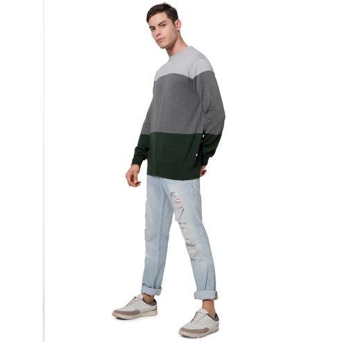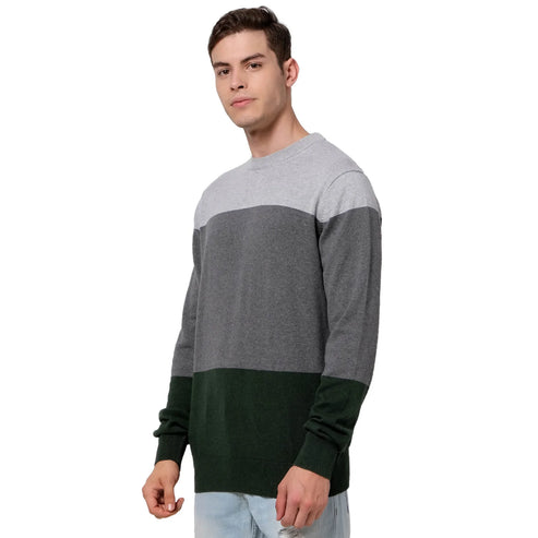 Take this Pullover Sweater, for example. It is made from soft cotton, offering breathability and warmth for chilly evenings. It is ideal for day travels or informal get-togethers because of its vivid grey color and delicate color-blocking, giving it a lively, contemporary vibe.