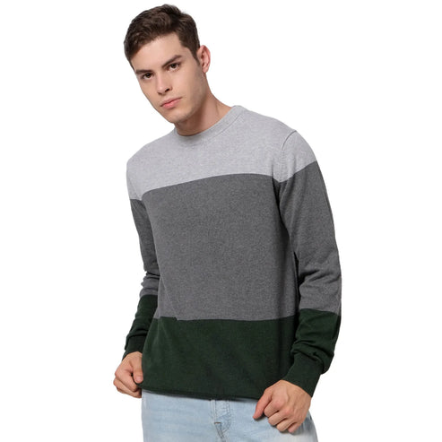 Consider the Mustard Straight-Fit Colorblocked Cotton Sweater. This pullover is a great choice for relaxed weekends as well as workdays. Its straight fit guarantees comfort all day, and its color-blocked design in mustard and subdued tones adds a touch of refinement. It can be tucked into tailored trousers for a smart casual workplace ensemble or worn with jeans for a more relaxed style.
