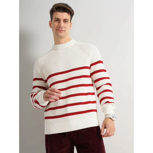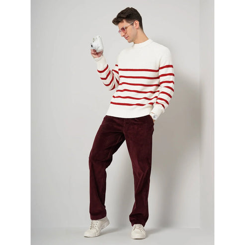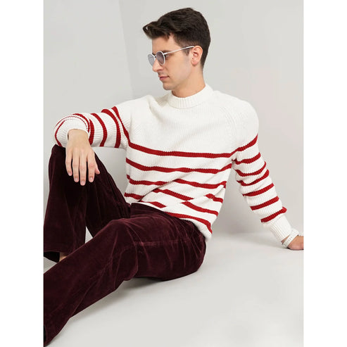 When winter comes around, switch to thicker materials like wool or cashmere. The Regular Fit Sweater is ideal for colder climates with its thick-knit fabric and stylish design. The added warmth keeps you snug, while the vertically striped design makes you look chic.