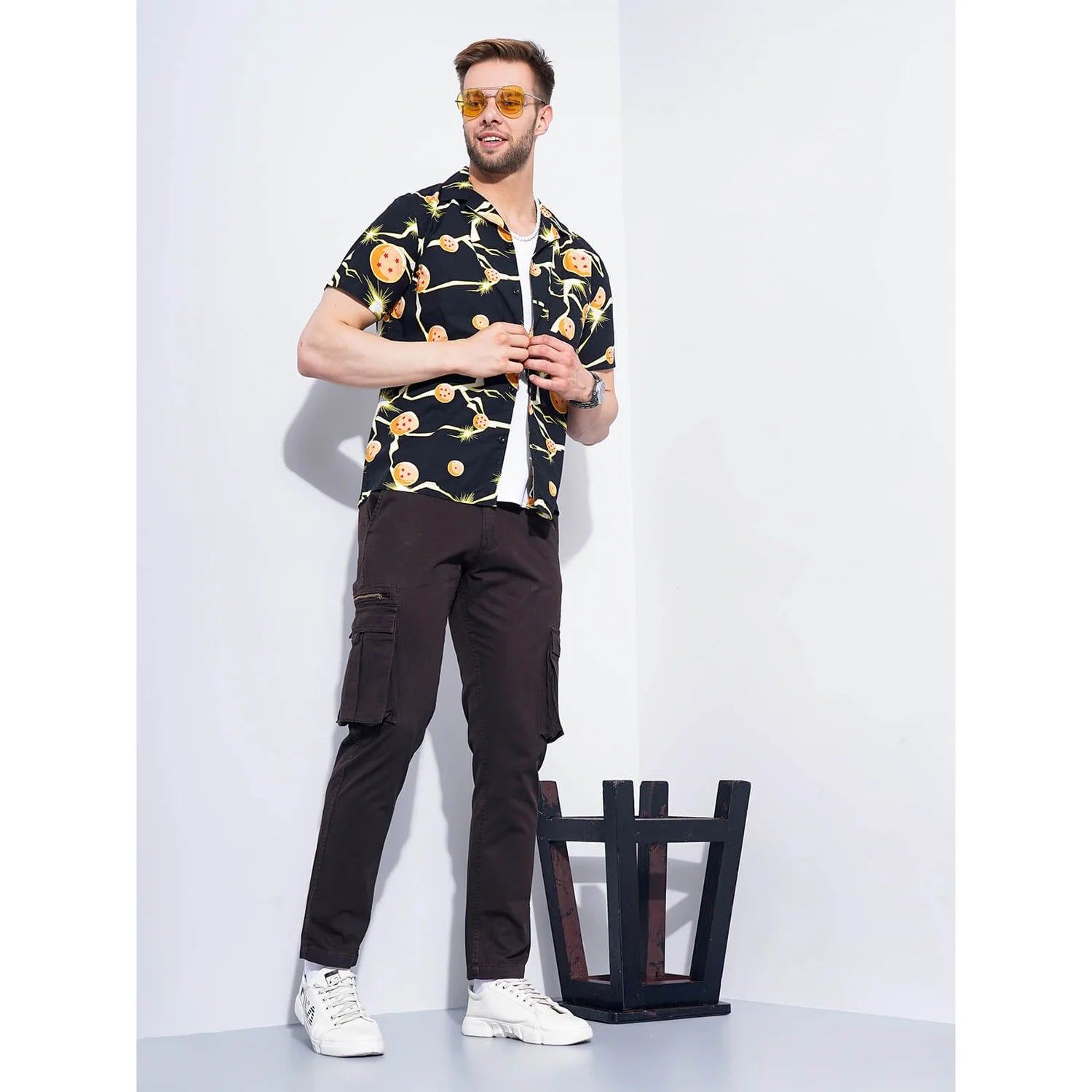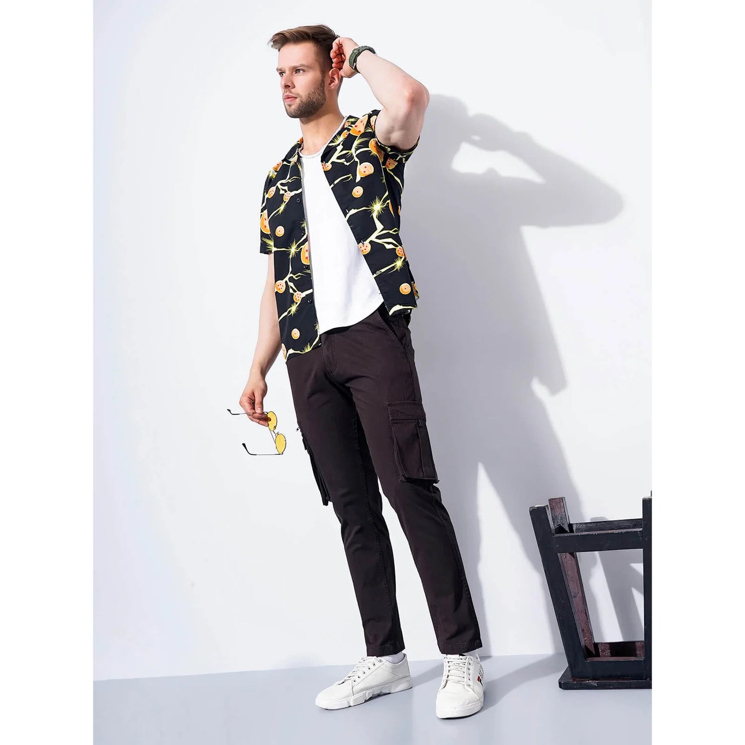 Iconic Black Hue: Are you a black lover? Then try this shirt for a laid-back vibe. Though it exhibits impressive prints all over the shirt, the black hue looks prominent. Also, this shade makes it easy to pair with any cool-looking bottom wear. This black shirt goes well with everything, be it white jeans, bold orange shorts, or beige chinos.