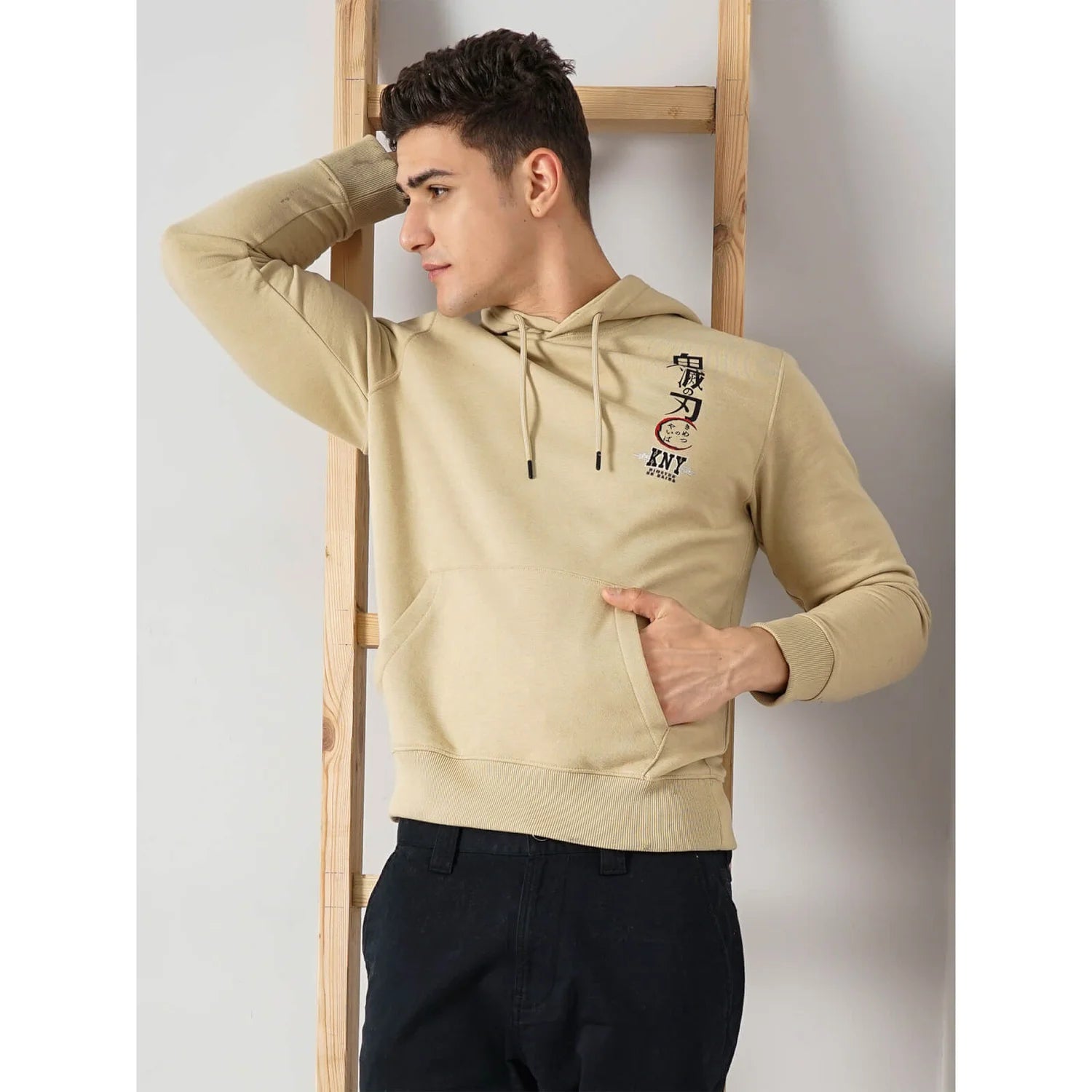 Your love for the series Demon Slayer as a whole can be expressed with this hoodie design. This beige shade hoodie excellently fuses anime aesthetics with your casual look. Here are its unique features: