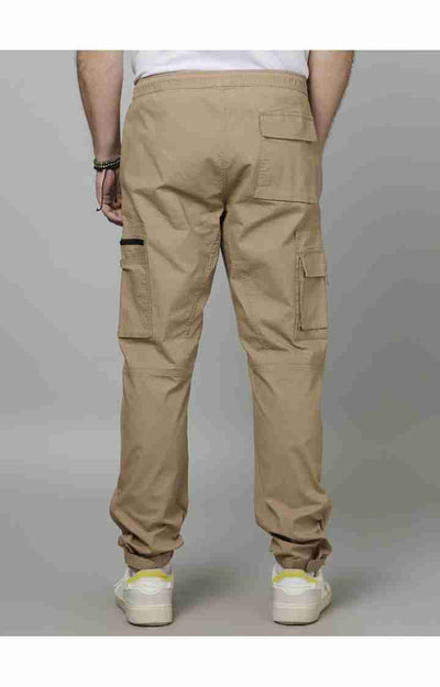 Celio* Cotton-Blend Regular Fit Beige Trouser