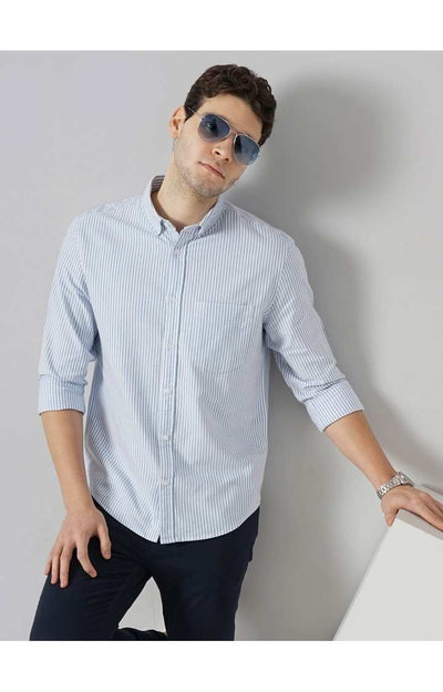 Celio* Striped Regular Fit Cotton Blue Shirt