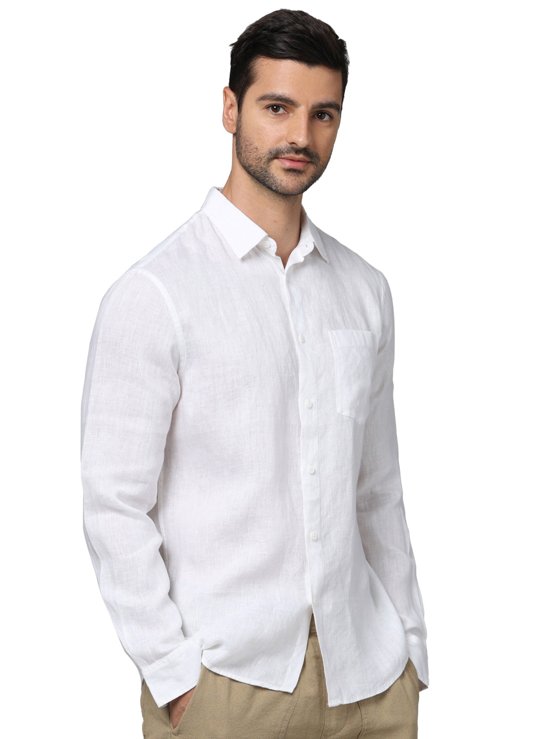 Celio* Solid Regular Fit Linen White Shirt
