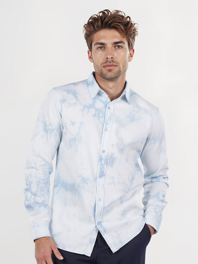 Celio* Dyed Regular Fit Cotton Blue Shirt
