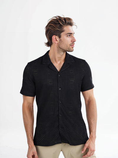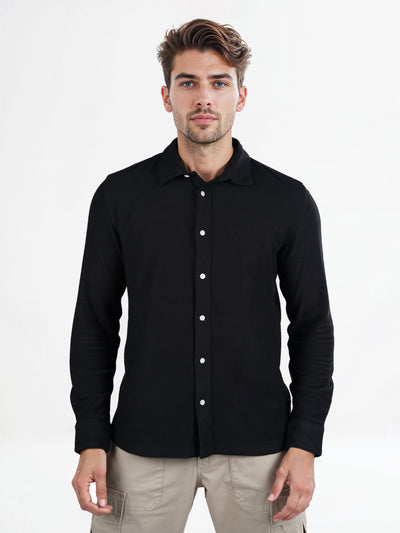 Celio* Solid Regular Fit Cotton-Blend Black Shirt