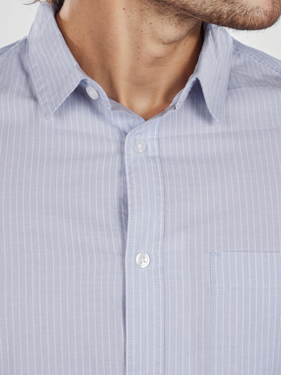 Celio* Striped Regular Fit Cotton Blue Shirt