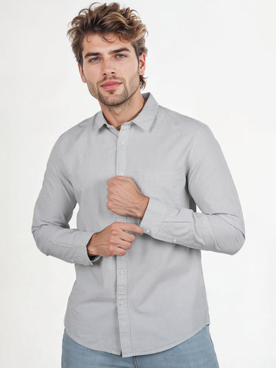 Celio* Solid Regular Fit Cotton Grey Shirts