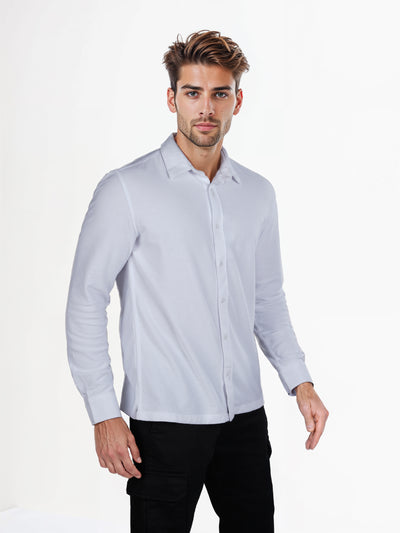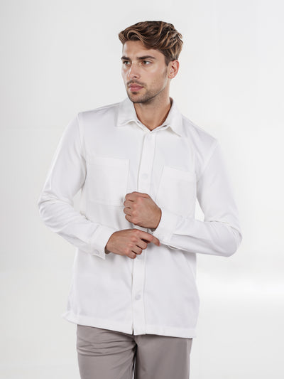 Celio* Solid Relaxed Fit Cotton-Poly-Blend White Shirt