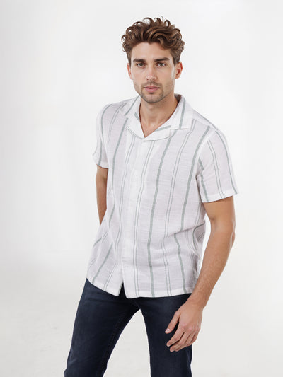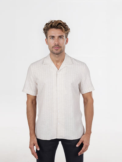 Celio* Striped Regular Fit Cotton Beige Shirt