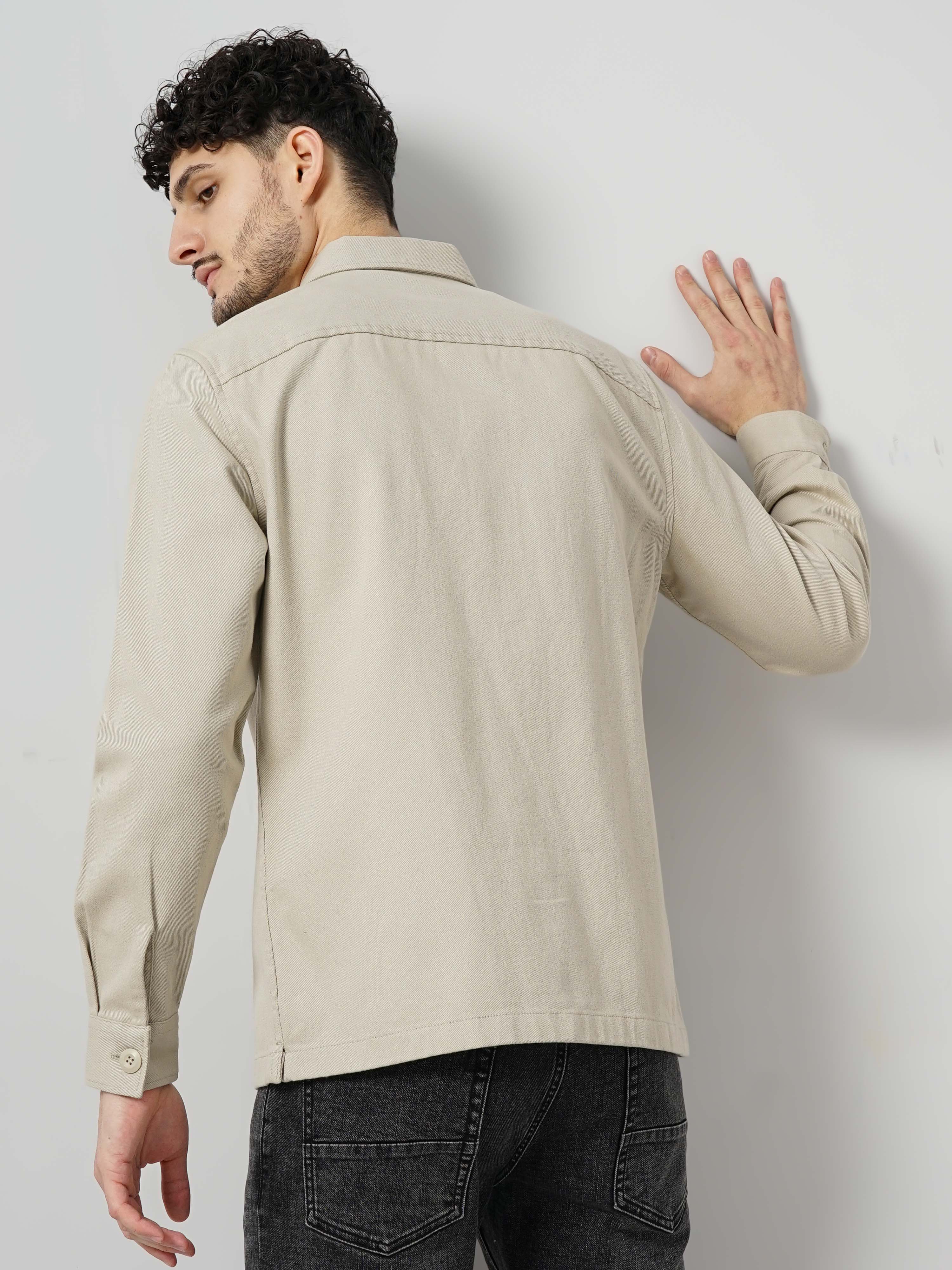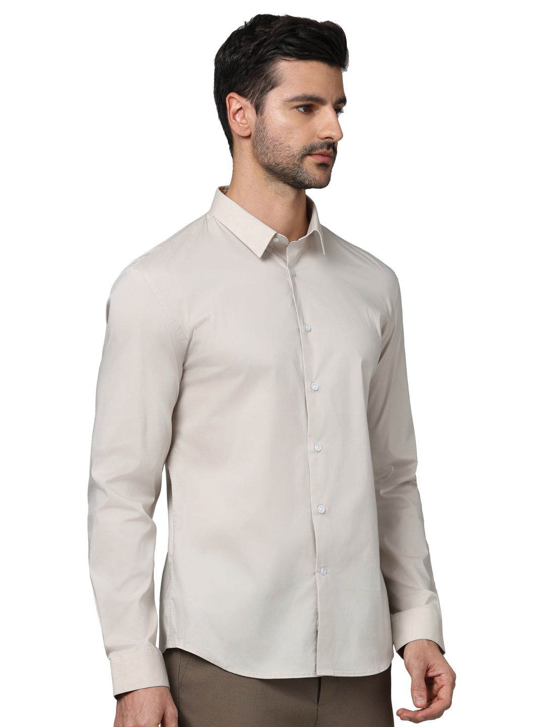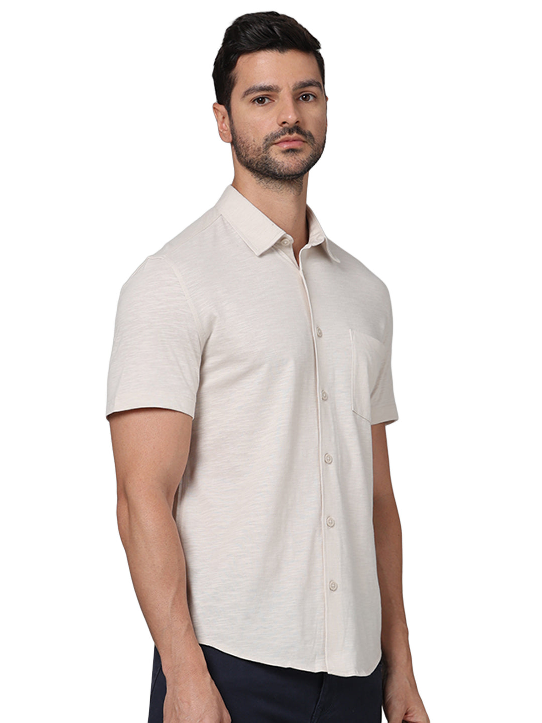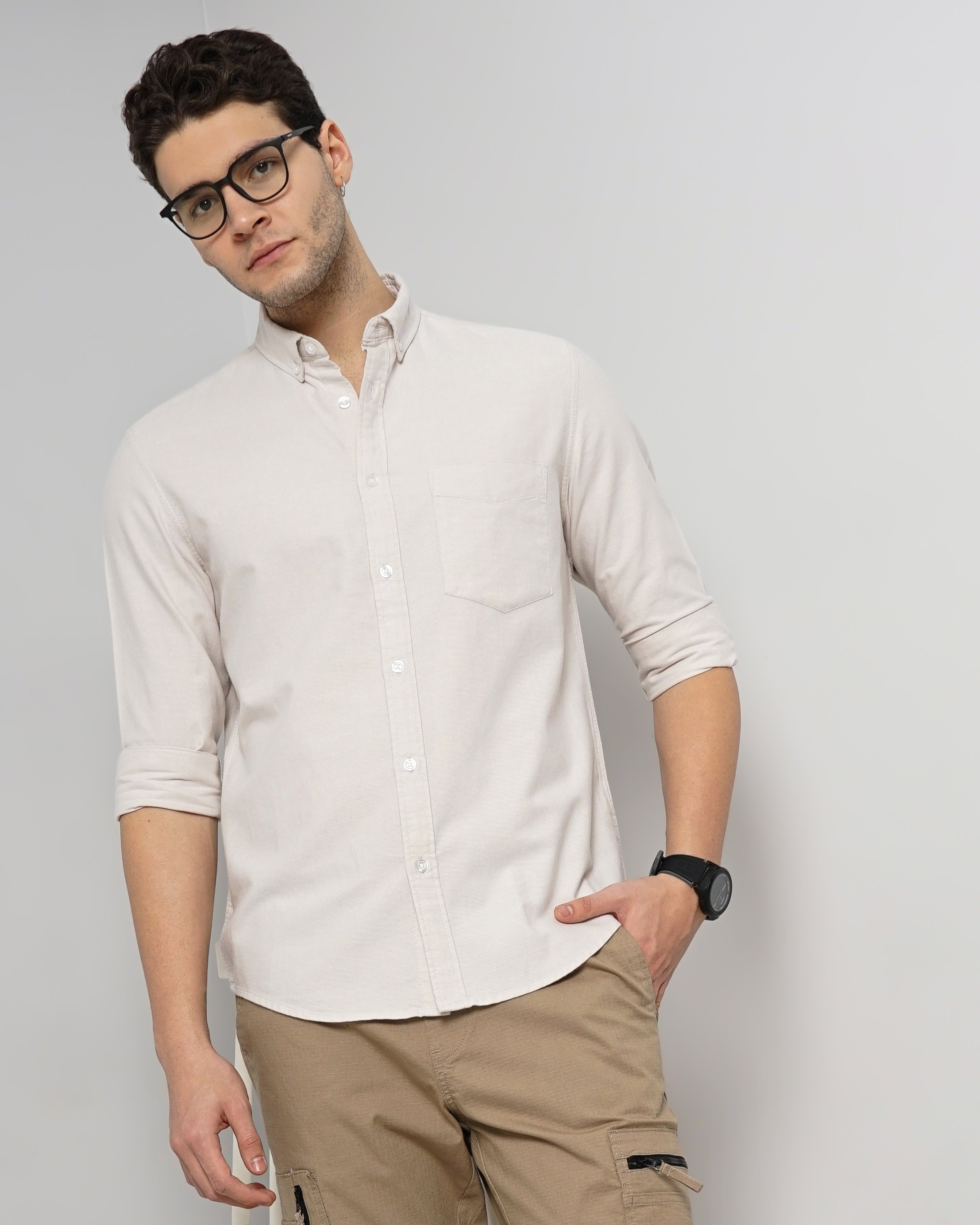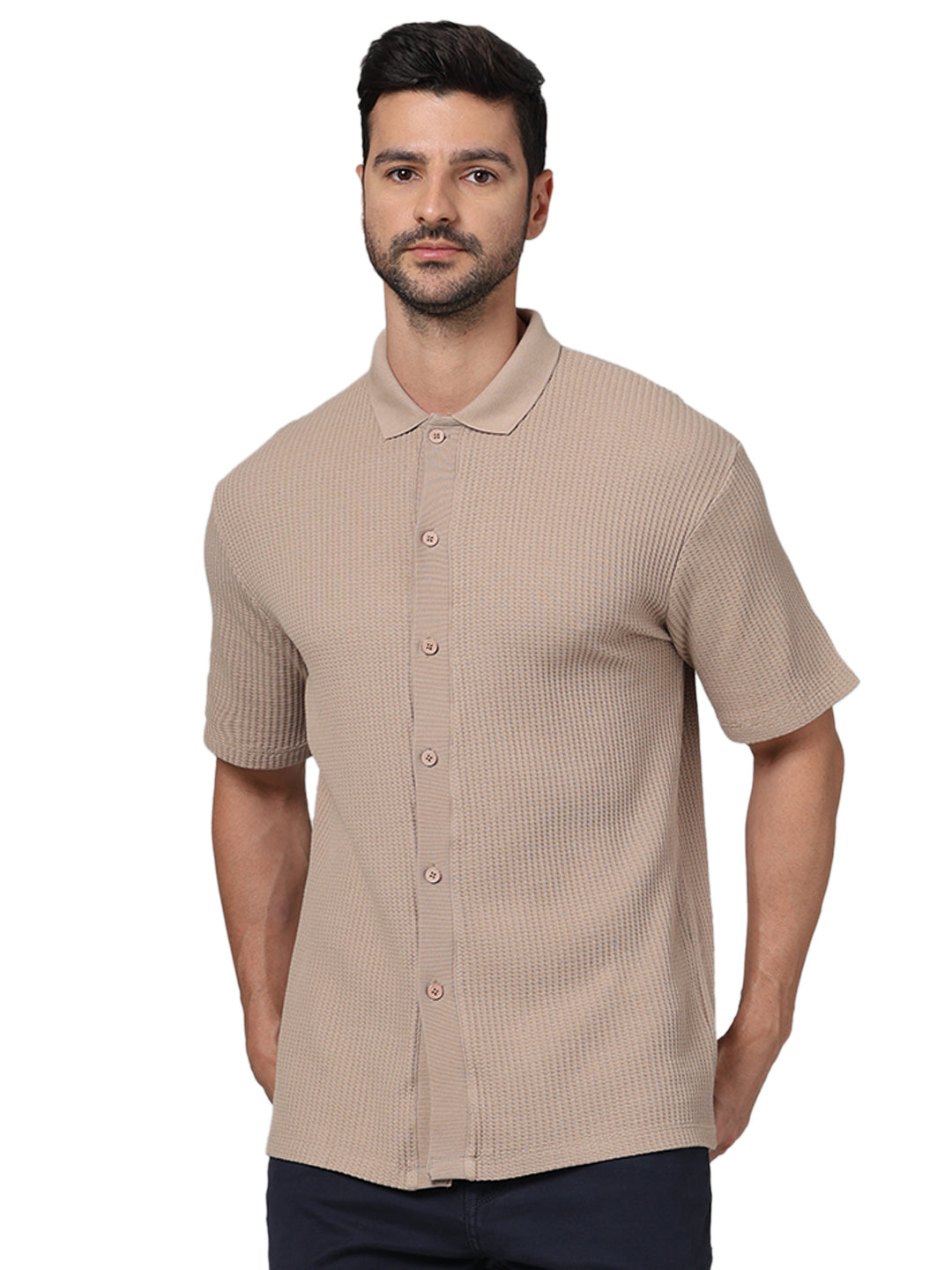 Celio* Solid Regular Fit Cotton Beige Shirt
