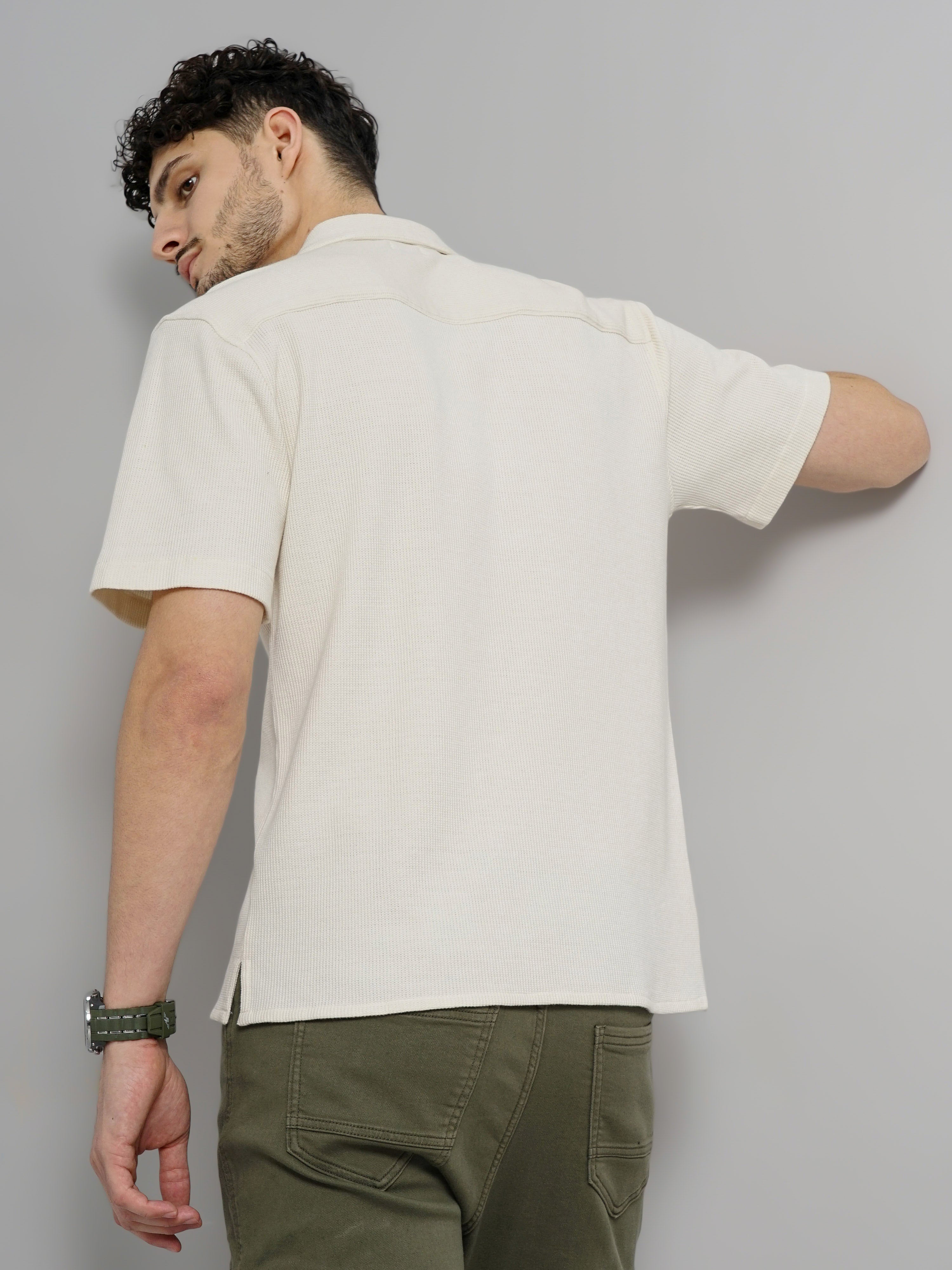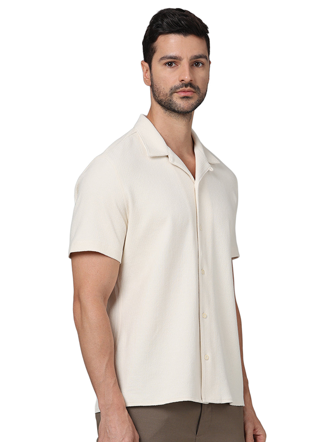 Celio* Men White Solid Regular Fit Cotton Casual Shirt