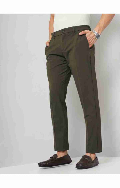 Celio* Poly-Blend Regular Fit Dark Olive Trouser