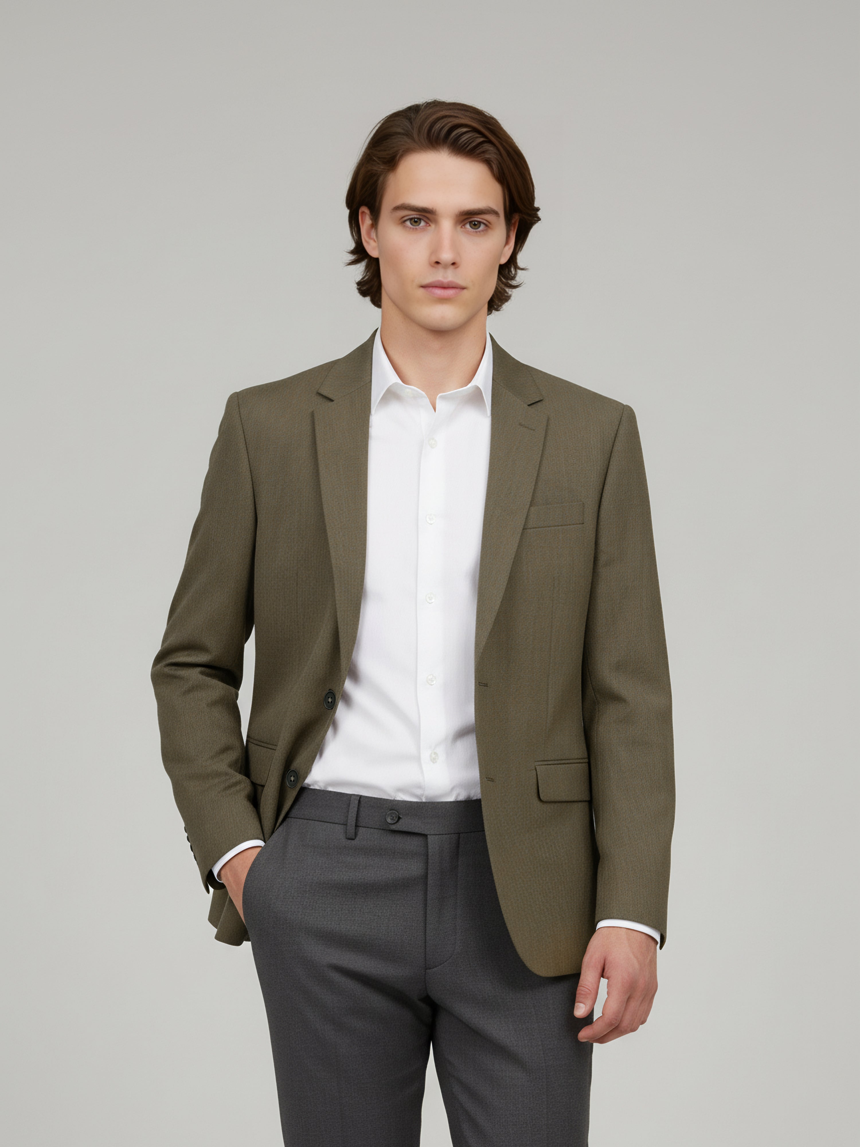 Celio* Men Olive Solid Regular Fit Linen Jackets