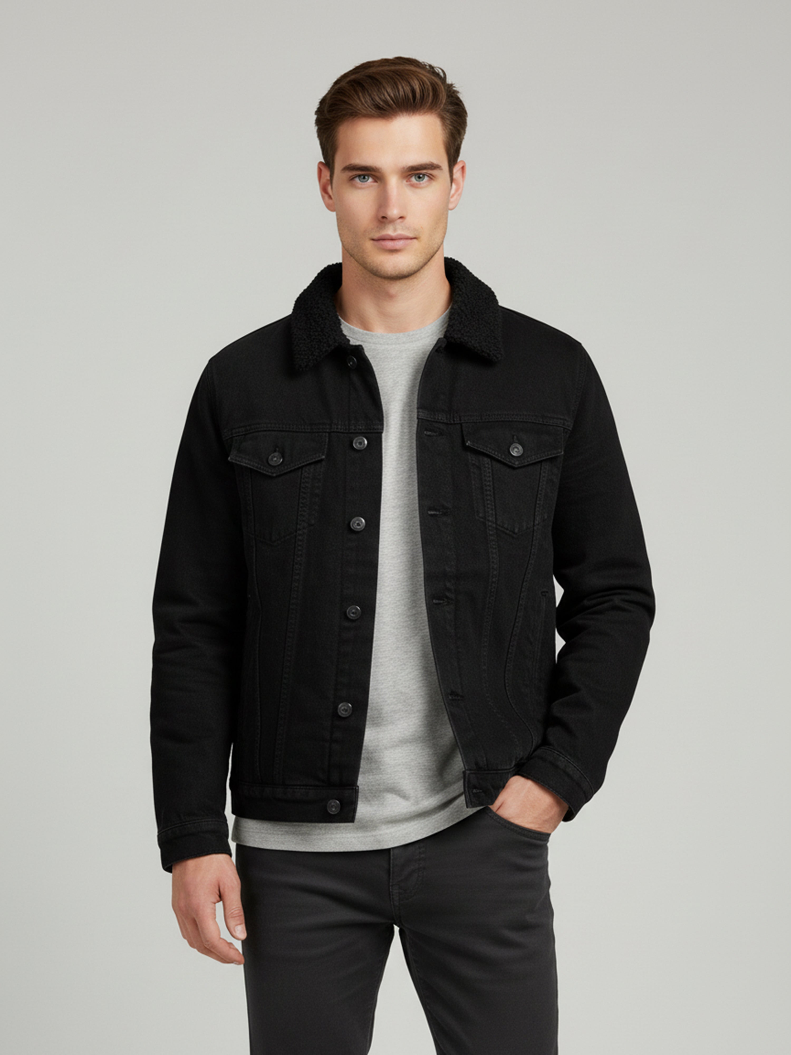 Celio Men Black Solid Regular Fit Cotton-Blend Jackets