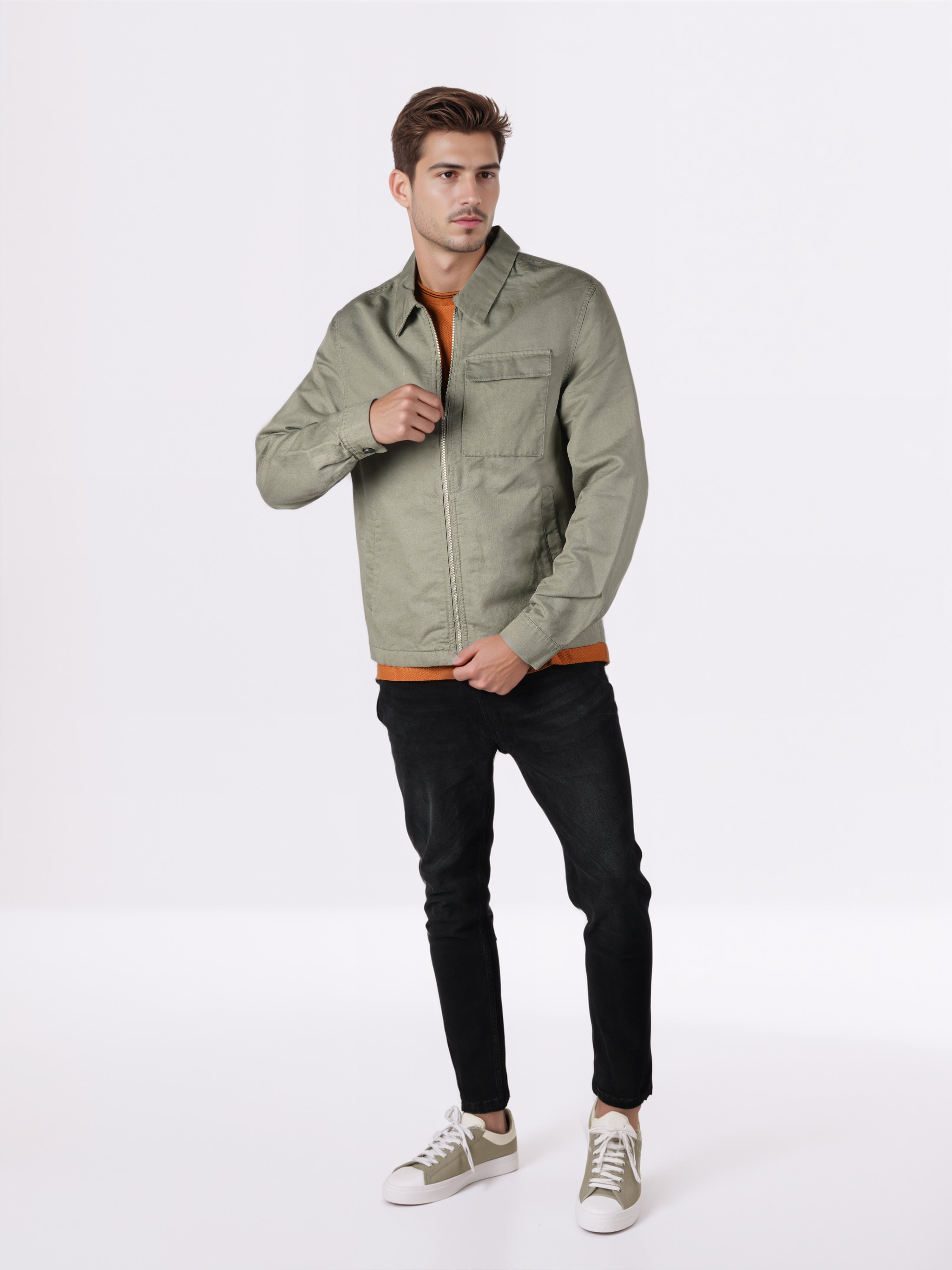 Celio Men Beige Solid Regular Fit Cotton Jackets