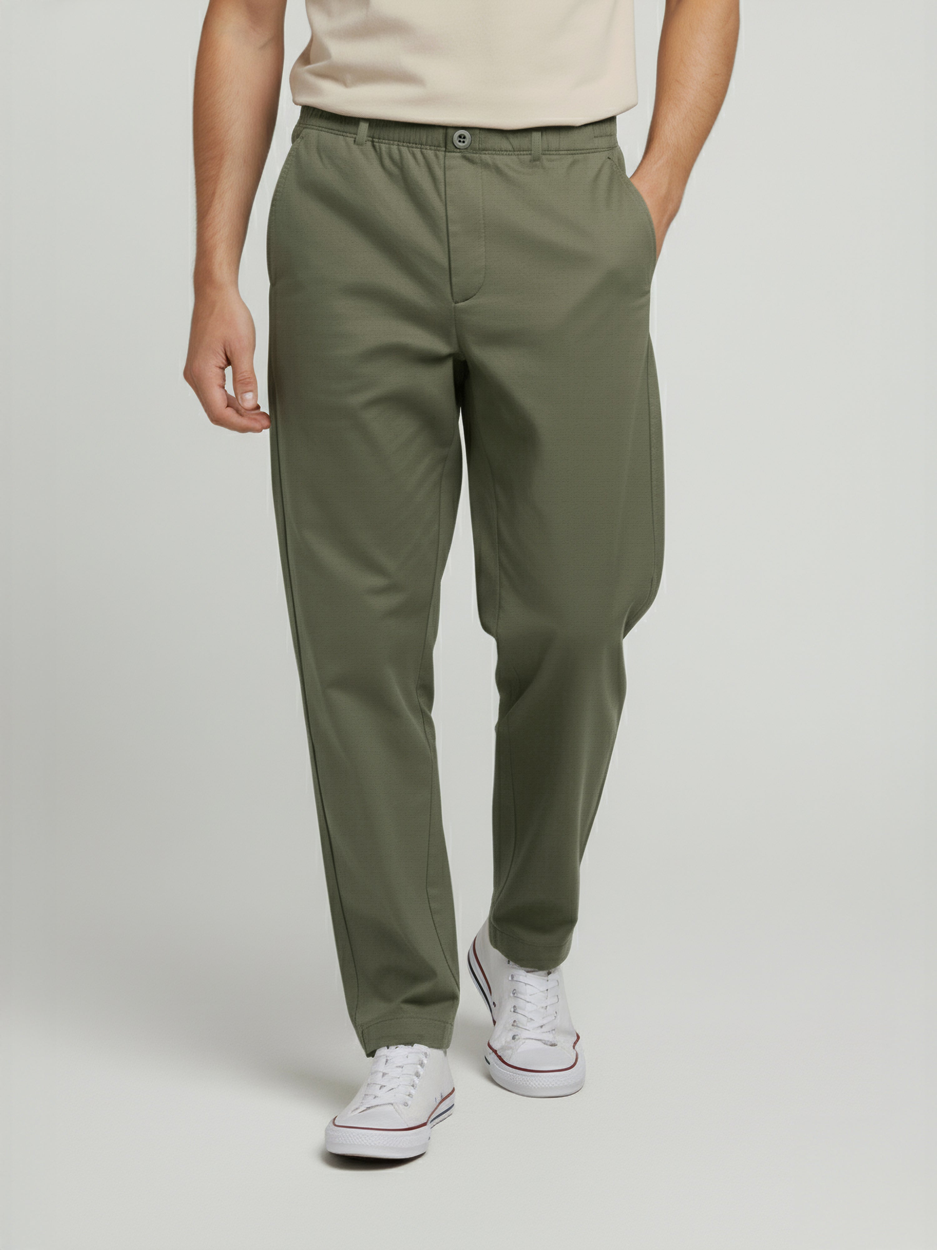 Celio* Men Khaki Solid Straight Fit Linen Trousers