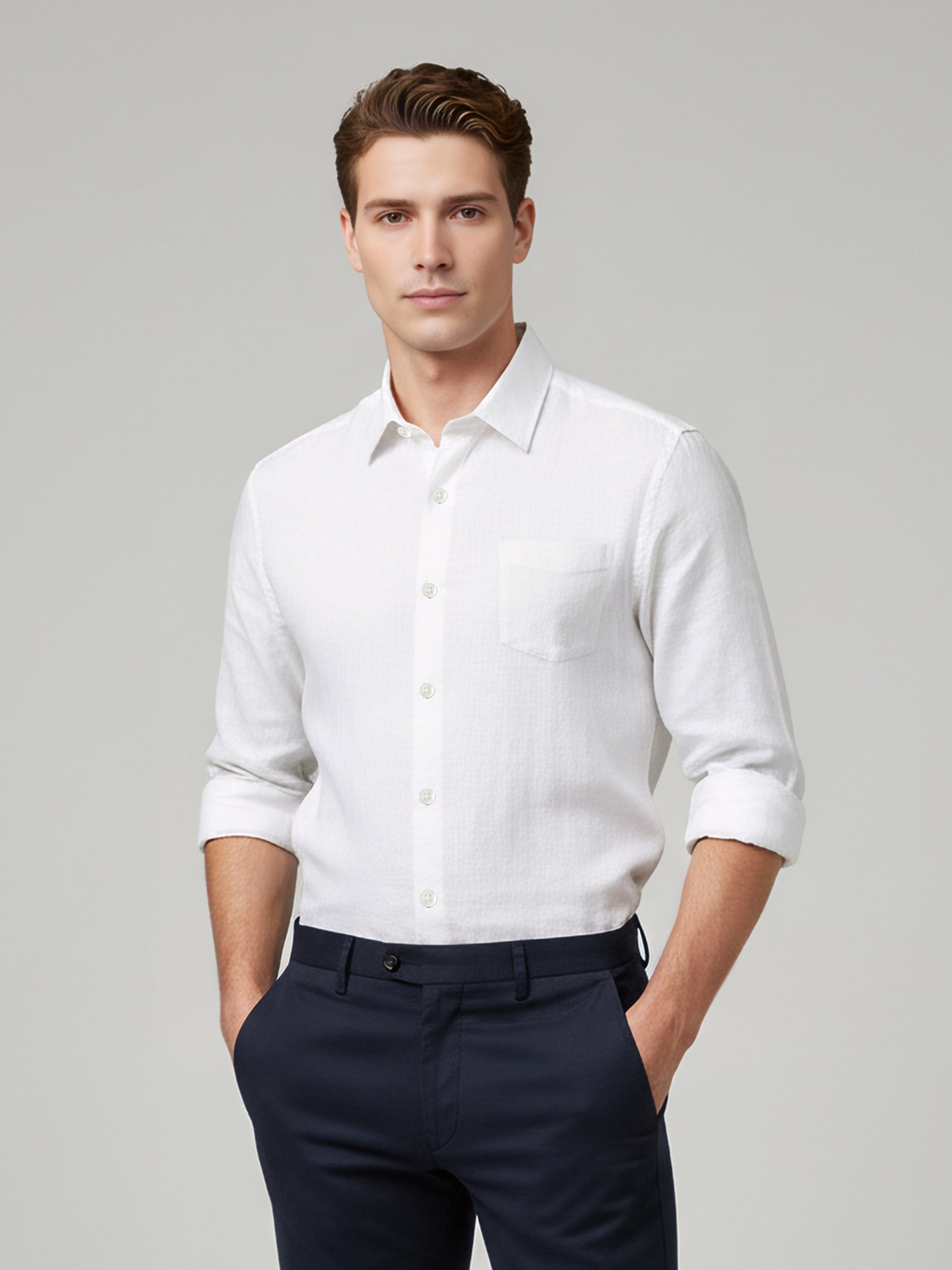 Celio* Solid Regular Fit Linen Off-White Shirt