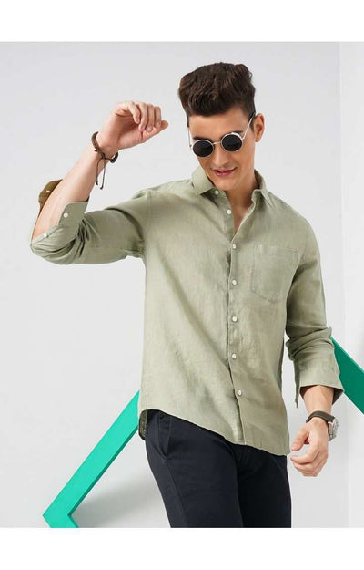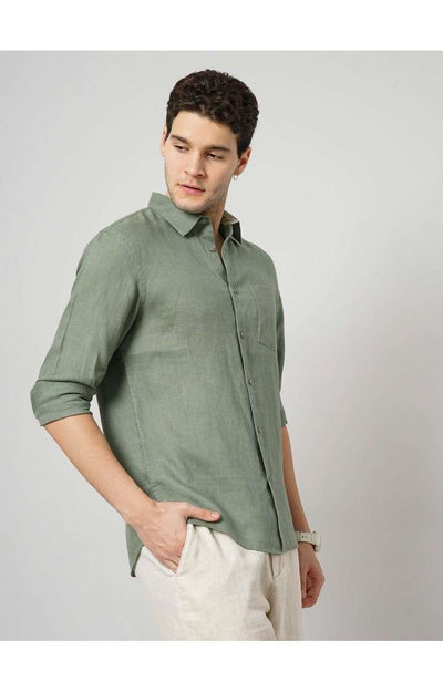 Celio* Men Brown Solid Regular Fit Linen Shirts