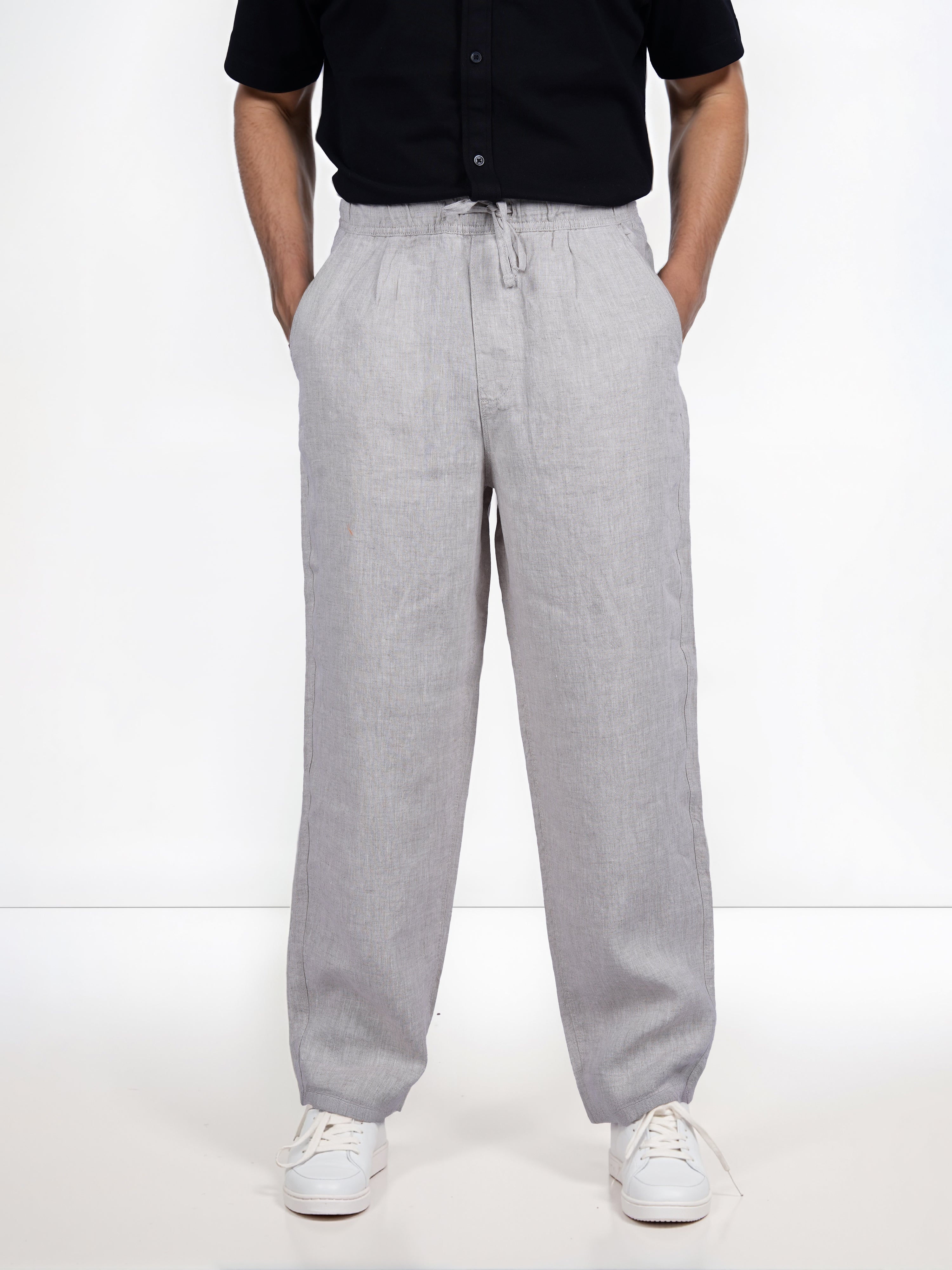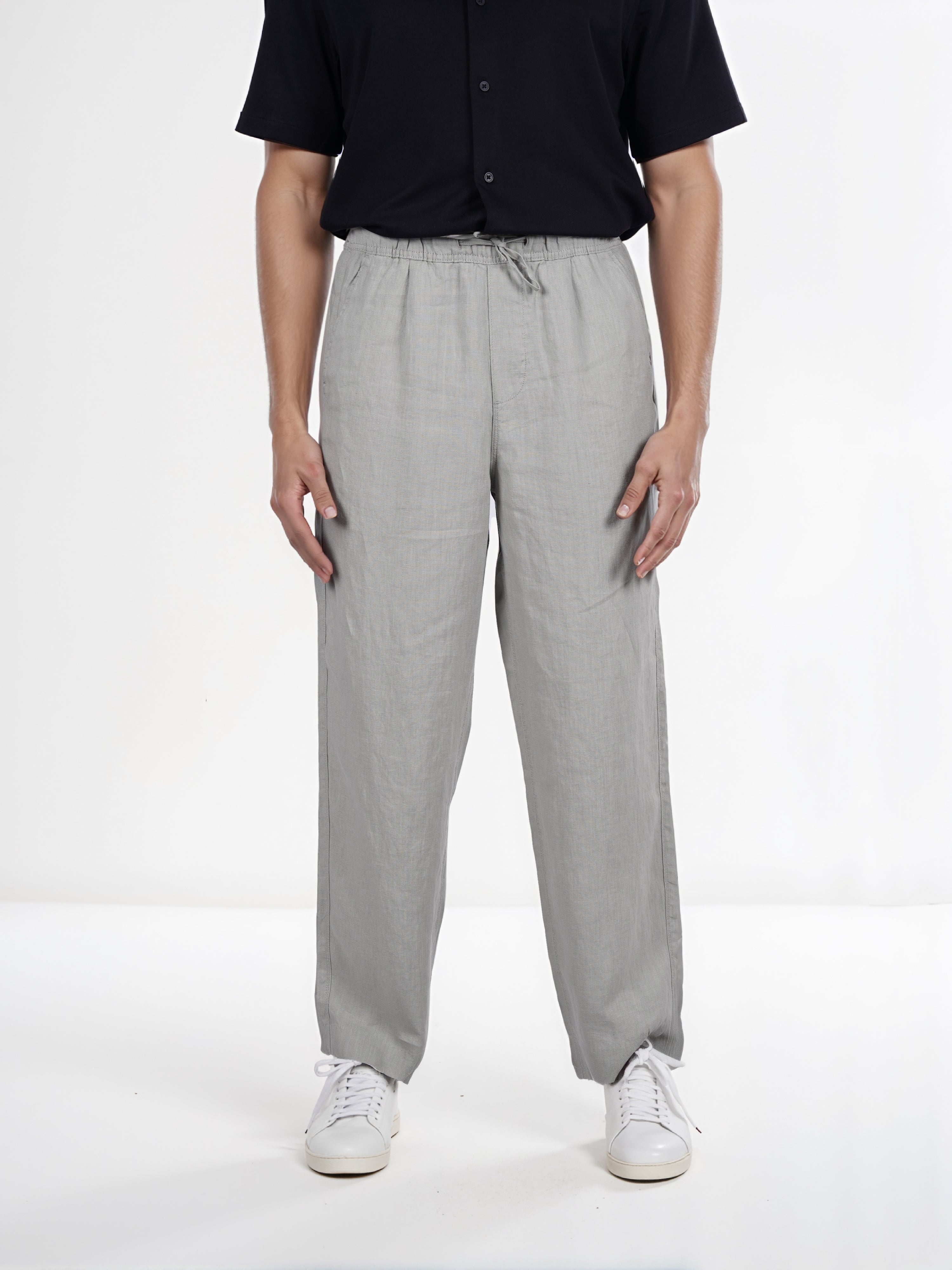 Celio* Men Grey Solid Straight Fit Linen Trouser