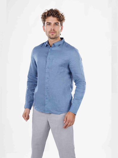 Celio* Men Blue Solid Regular Fit Linen Shirts