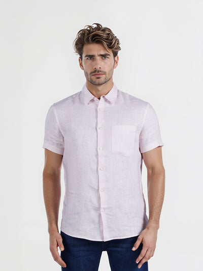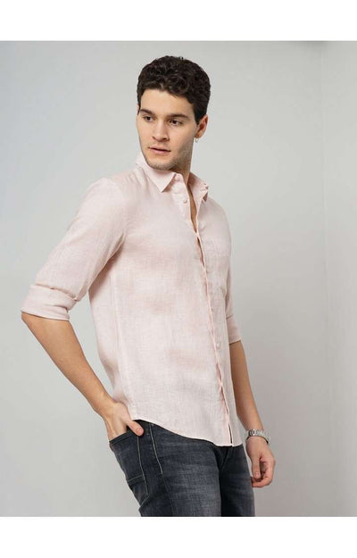 Celio* Men Pink Solid Regular Fit Linen Shirt