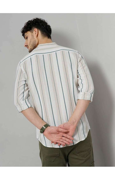 Celio* Striped Regular Fit Cotton Beige Shirt