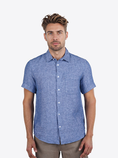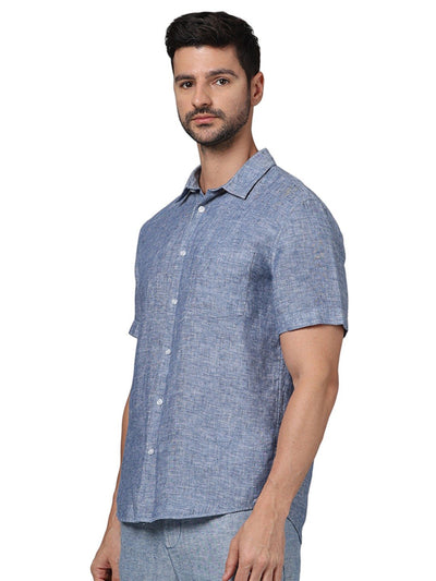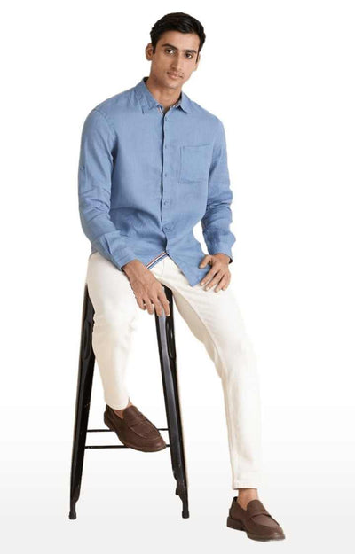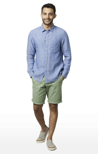 Celio Men Blue Solid Regular Fit Linen Shirts