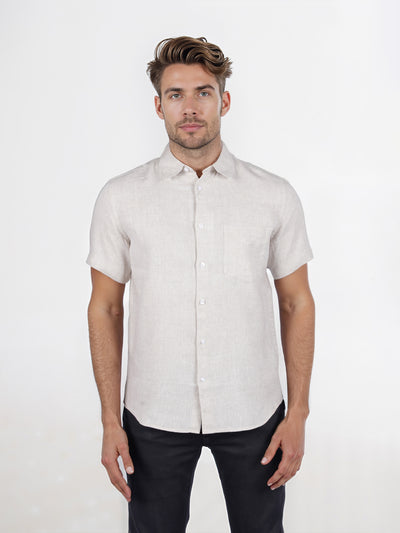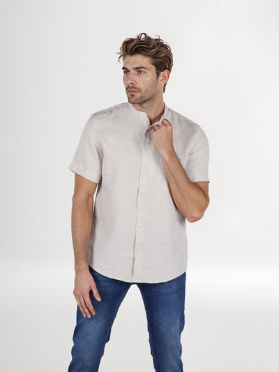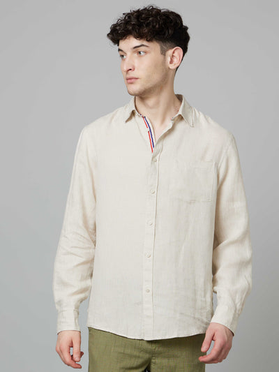 Celio Men Beige Solid Regular Fit Linen Shirts