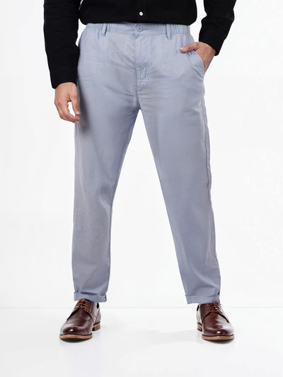 Celio Men Blue Solid Straight Fit Linen Trousers