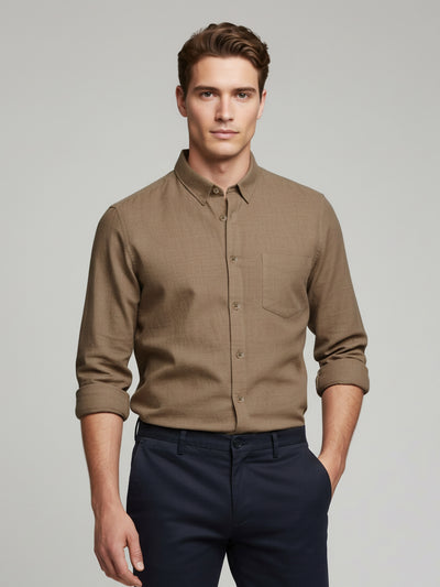 Celio* Men Brown Solid Regular Fit Linen Shirts