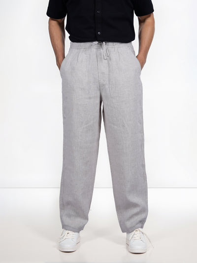 Celio* Men Off White Solid Jogger Fit Linen Trousers