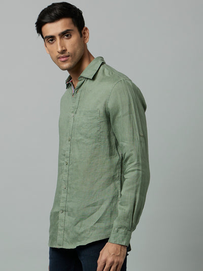 Celio* Men Green Solid Regular Fit Linen Shirts