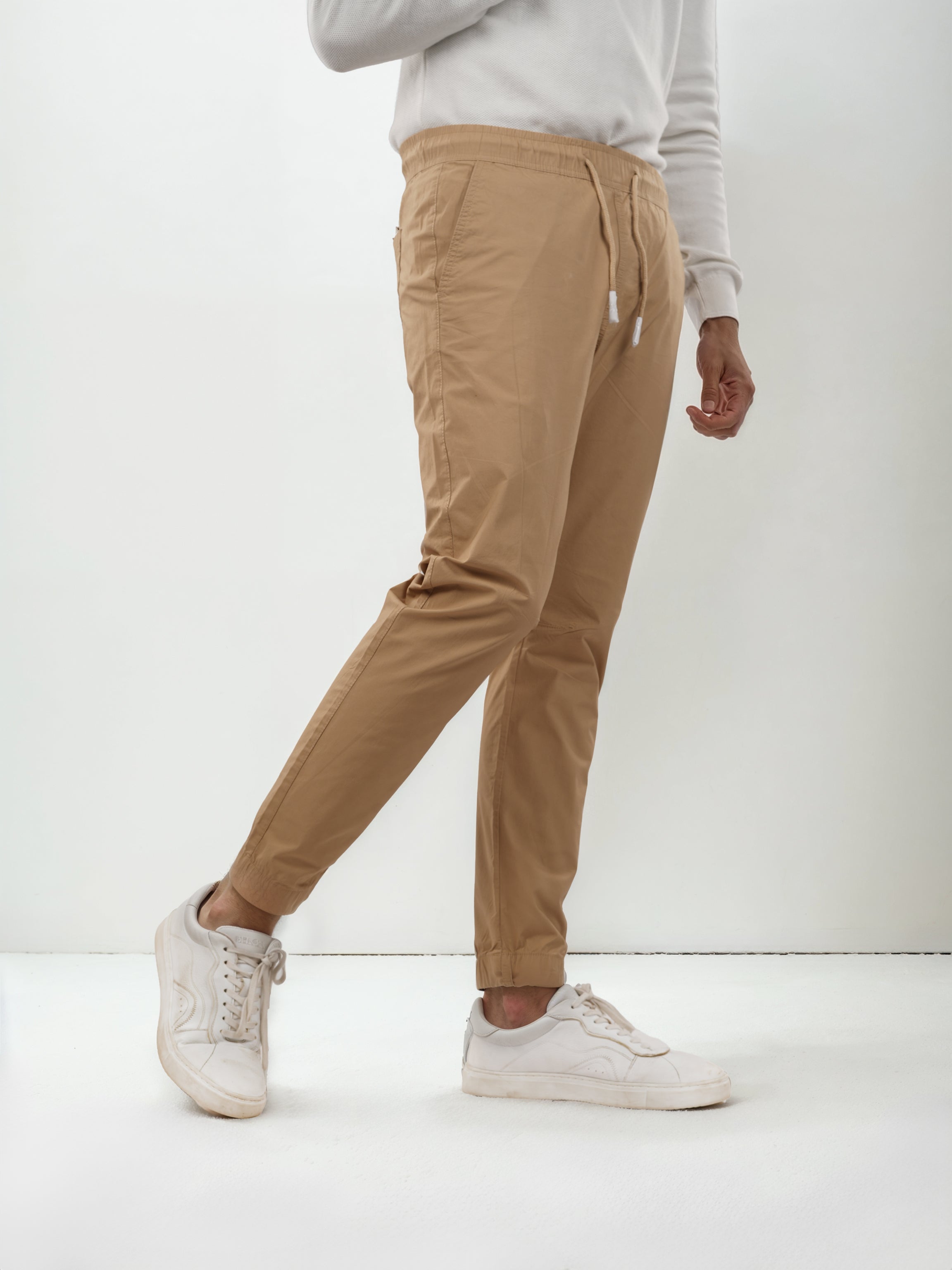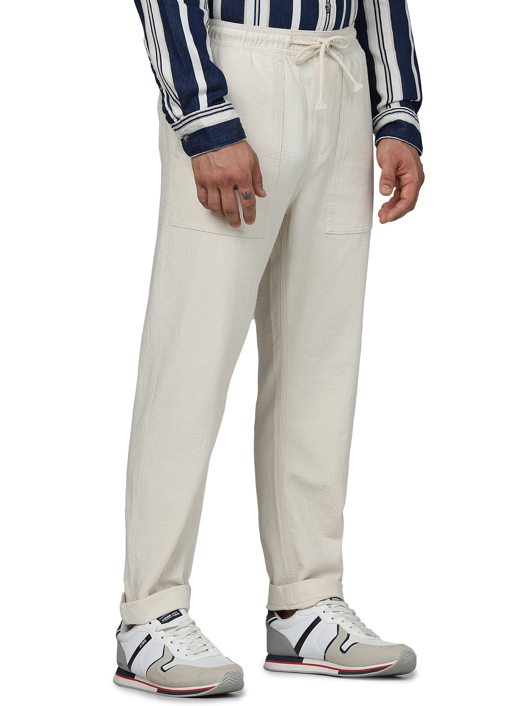 Celio Men Beige Solid Jogger Fit Cotton-Tencel-Blend Trousers
