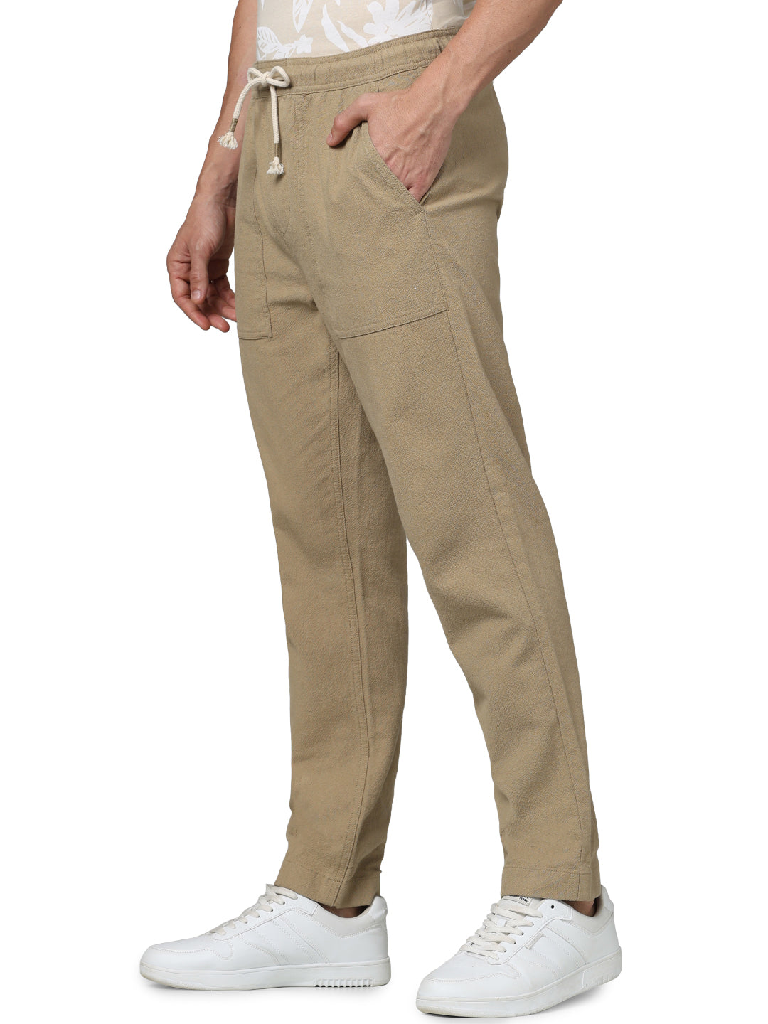 Celio Men Beige Solid Slim Fit Linen Trousers