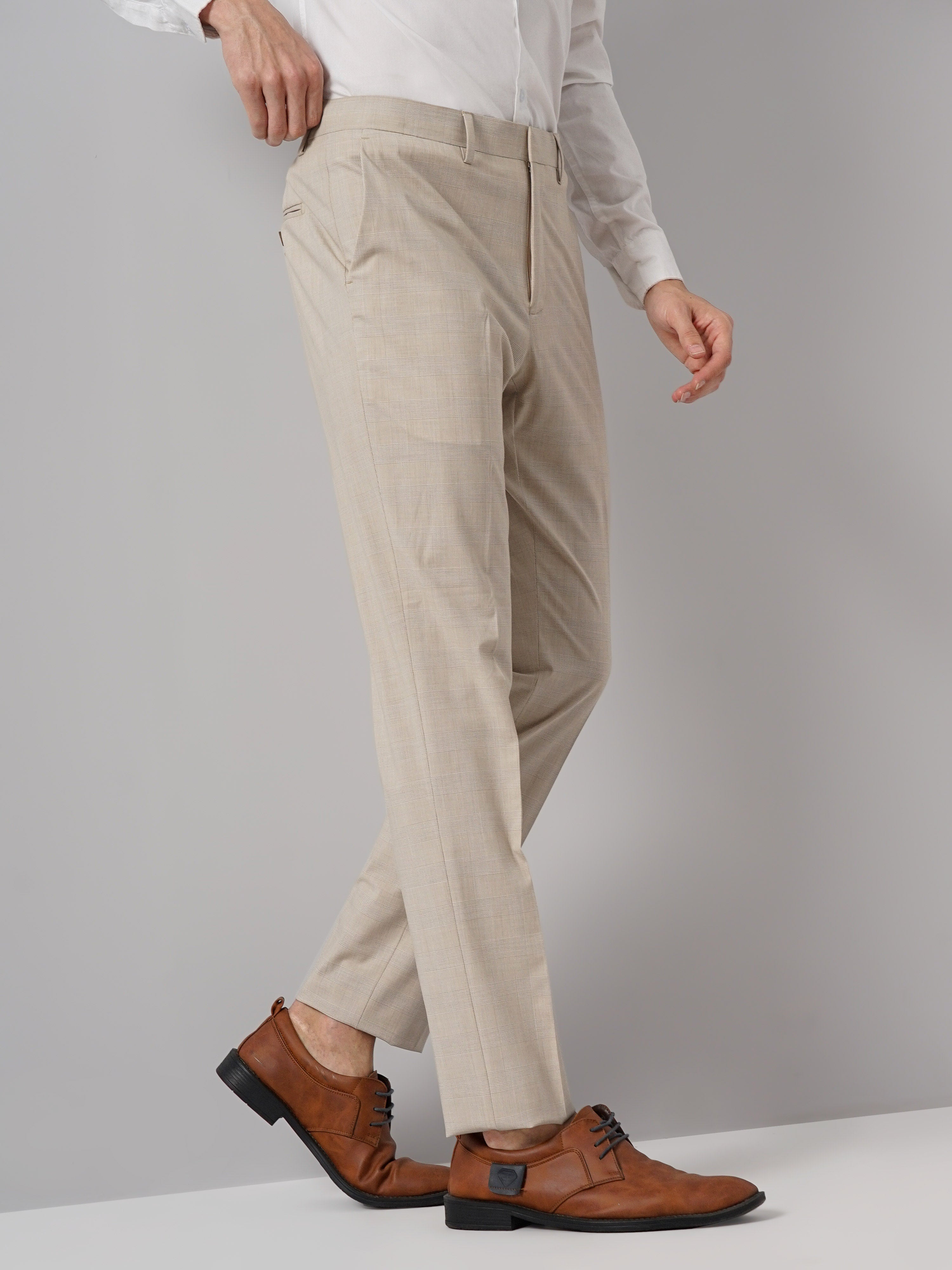 Celio* Men Beige Solid Slim Fit Polyester Trouser