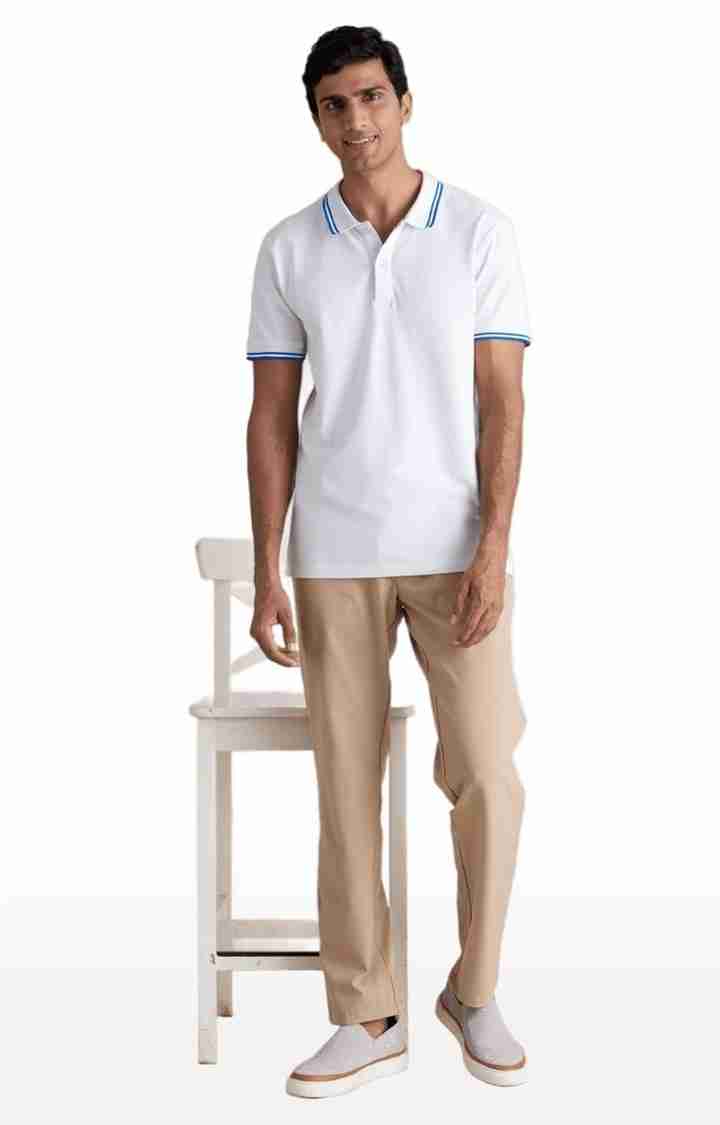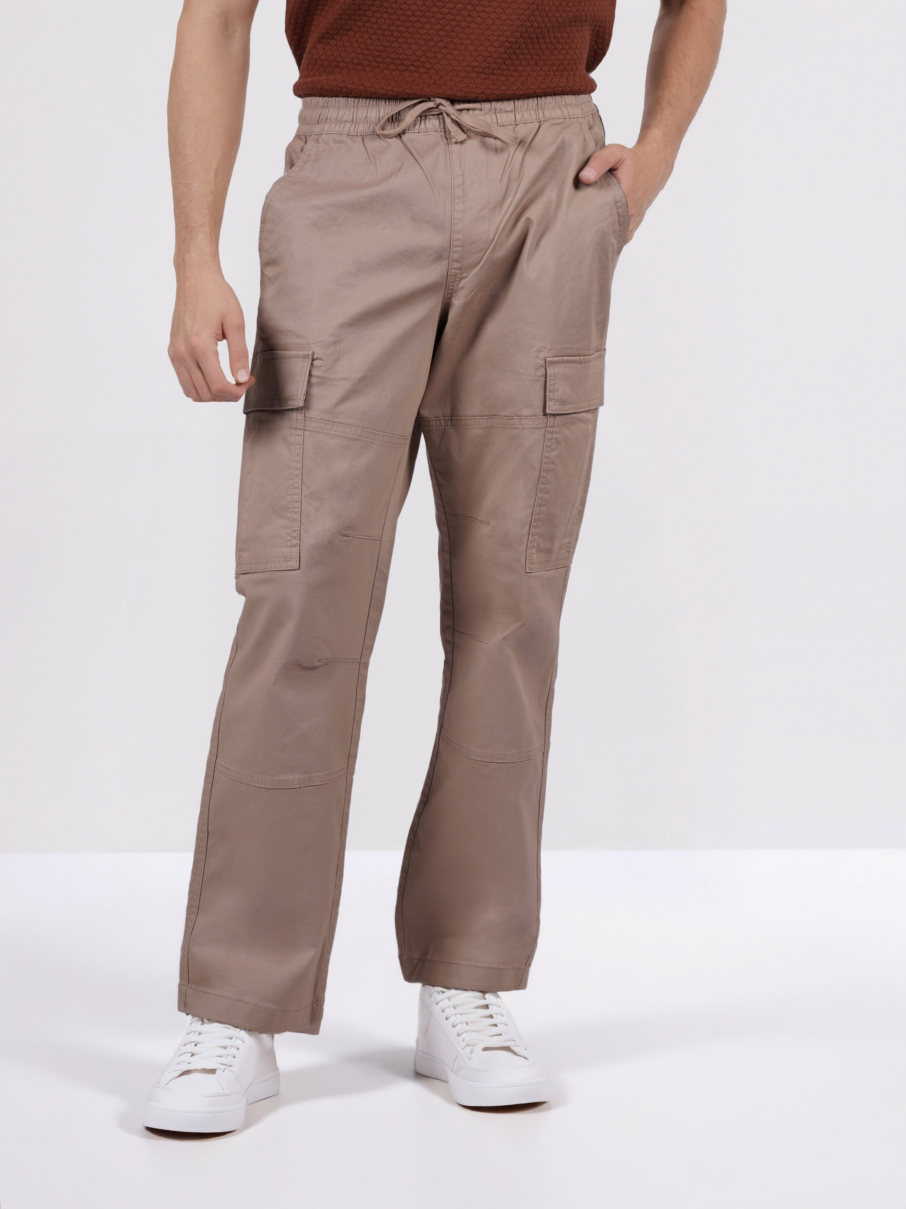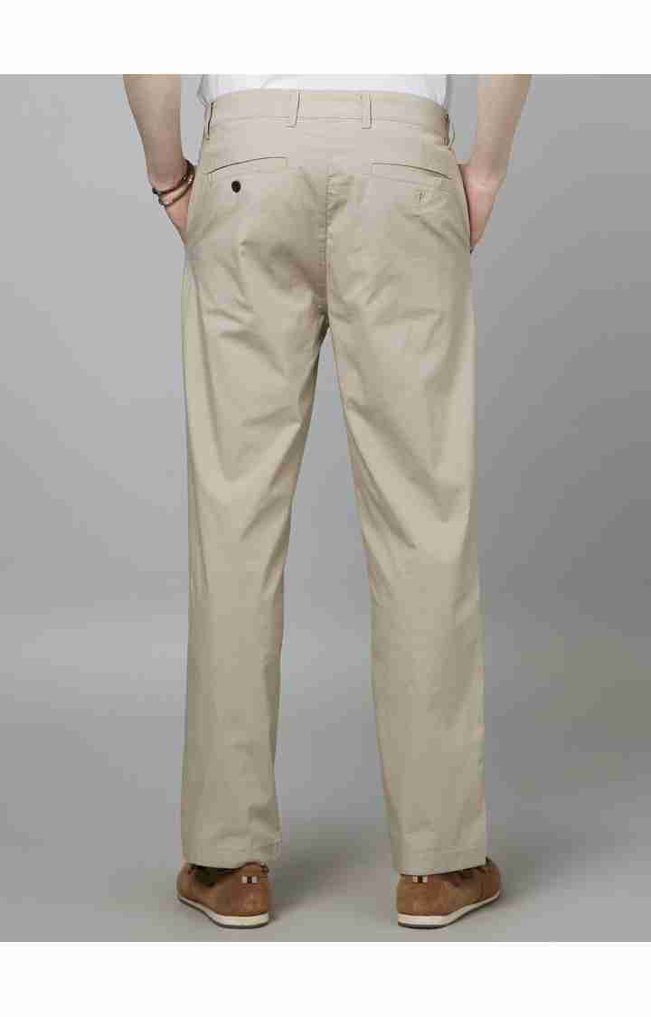 Celio* Men Beige Solid Straight Fit Cotton Trouser