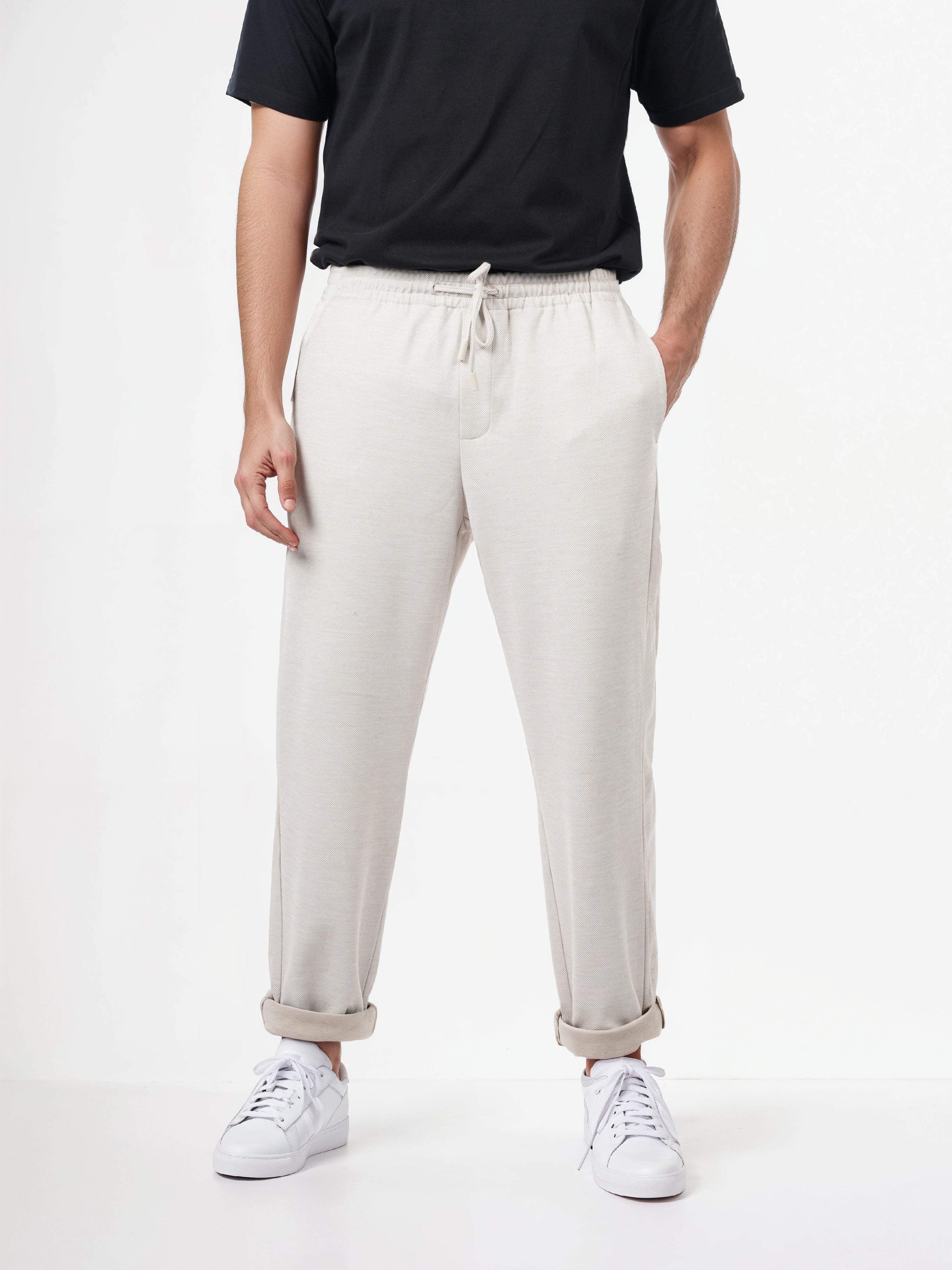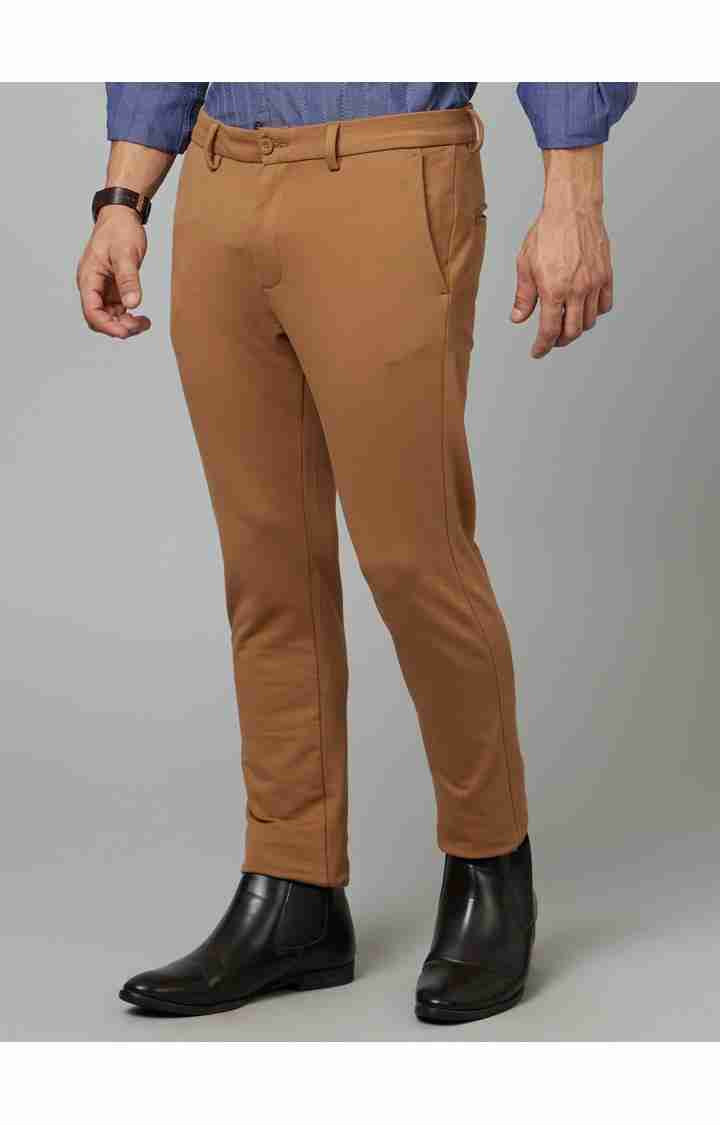 Celio* Men Beige Solid Slim Fit Terylene Knit Trouser