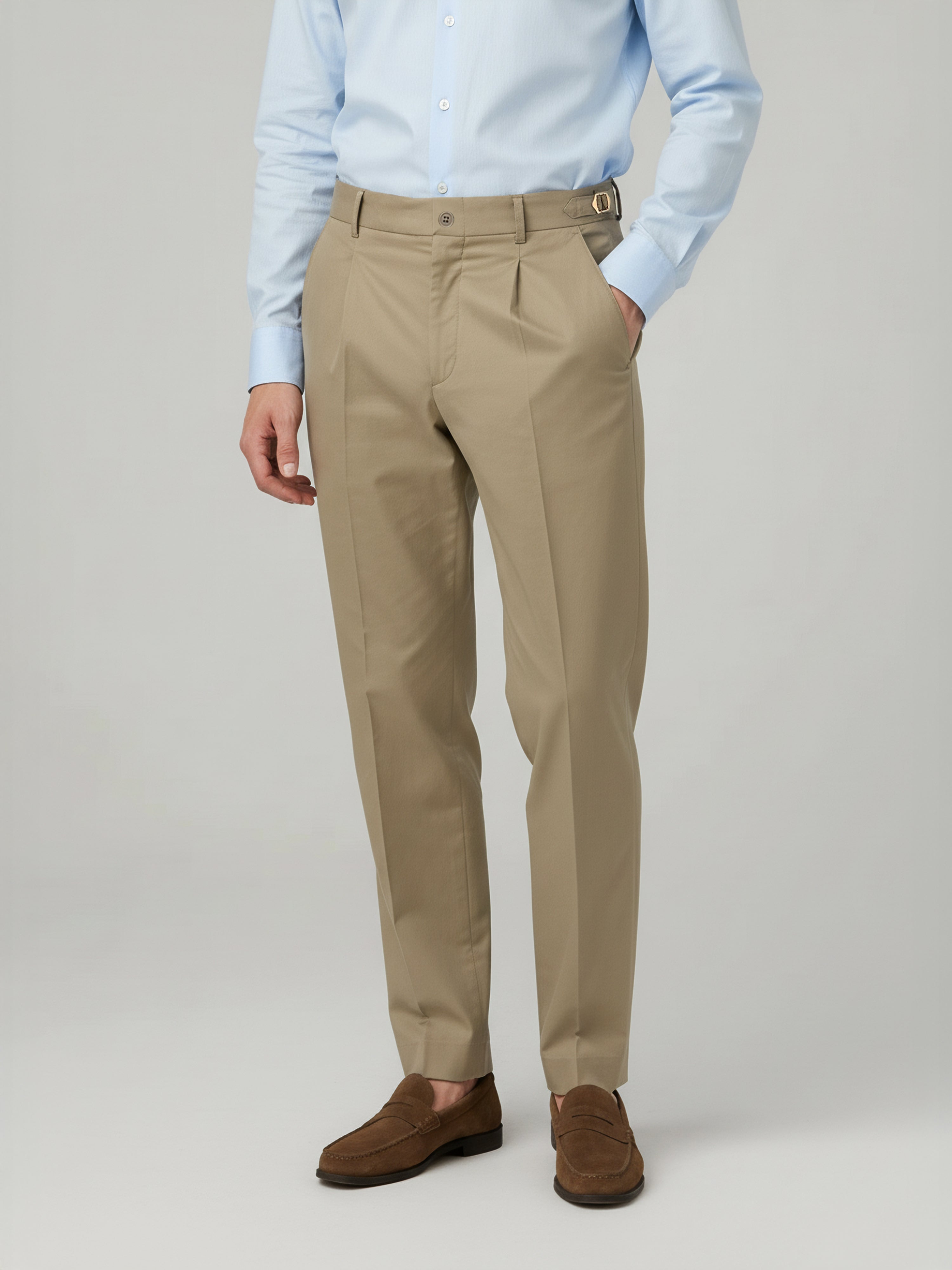 Celio* Workwear Cotton-Blend Relaxed Fit Beige Trouser